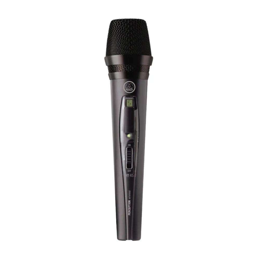 The HT45 analog high-performance wireless handheld transmitter features a dynamic microphone capsule for demanding vocal performances. The cardioid polar pattern ensures maximum gain before feedback and lets your voice cut through any mix. Its spring-steel wire-mesh front grille protects the transducer from the hardships of on-stage use. The HT45 provides a gain control for perfect adjustment of the input volume and a noiseless on/off/mute switch.