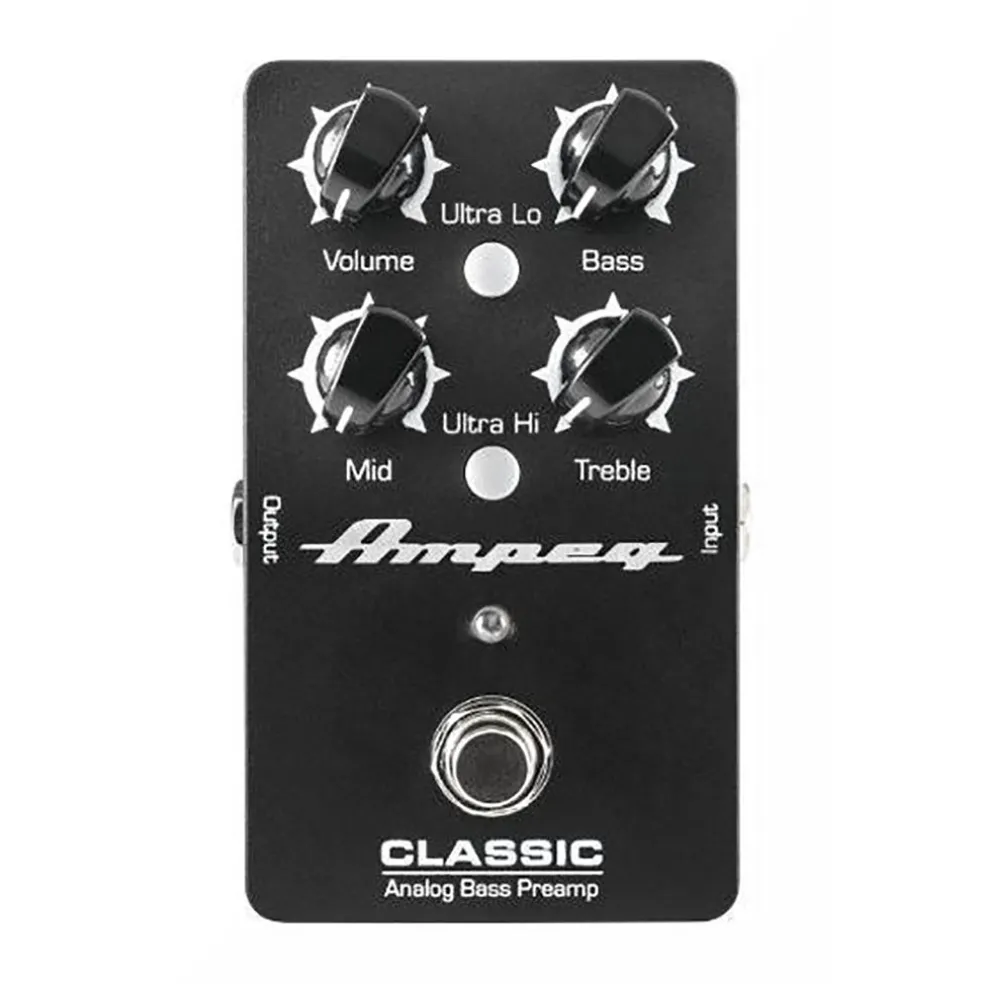 The Ampeg Classic Analog Bass Preamp pedal is like having a choice of Ampeg amps right on your pedal board. Dial in a wide range of authentic Ampeg tones with the 3-band tone stack and highly flexible Ultra-Hi and Ultra-Lo circuits. It’s the most affordable way into the pure analog bass tone of Ampeg.