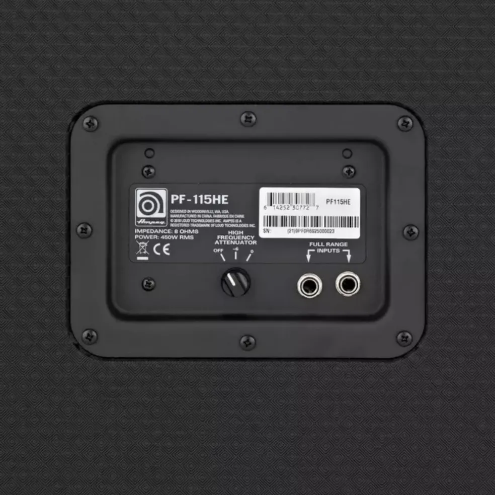 The PF-115HE is a 450-watt, 8Ω bass enclosure featuring a 15″ Eminence speaker and a selectable compression driver. Based on our classic “flip-top” design, just attach a PF-50T head and you’re ready to go.