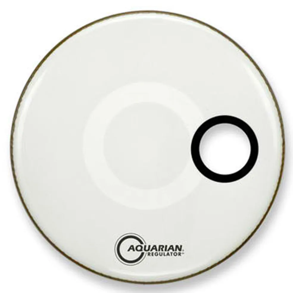 The offset ported WHITE Regulator RSM is a single ply, resonant bass drumhead that features a small, center-positioned, Floating Muffling Ring for added resonant control. This patented Aquarian innovation eliminates the need for external muffling of the resonant head.