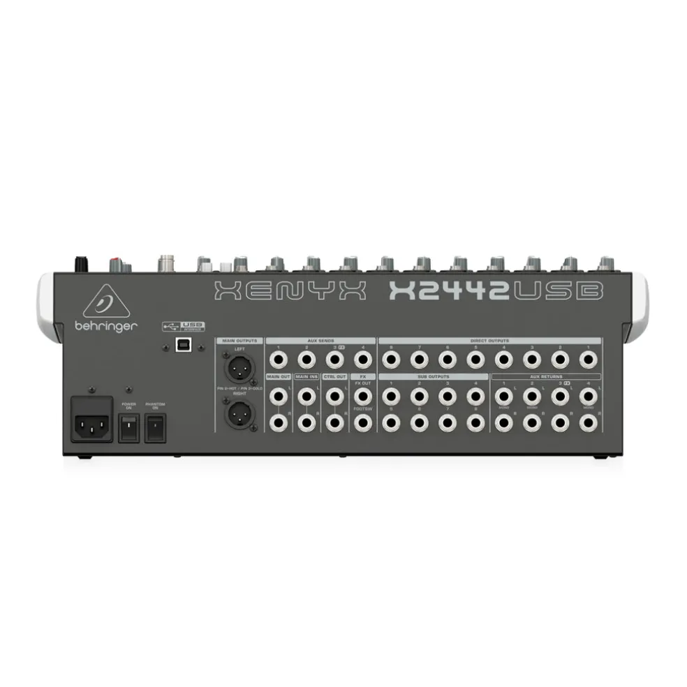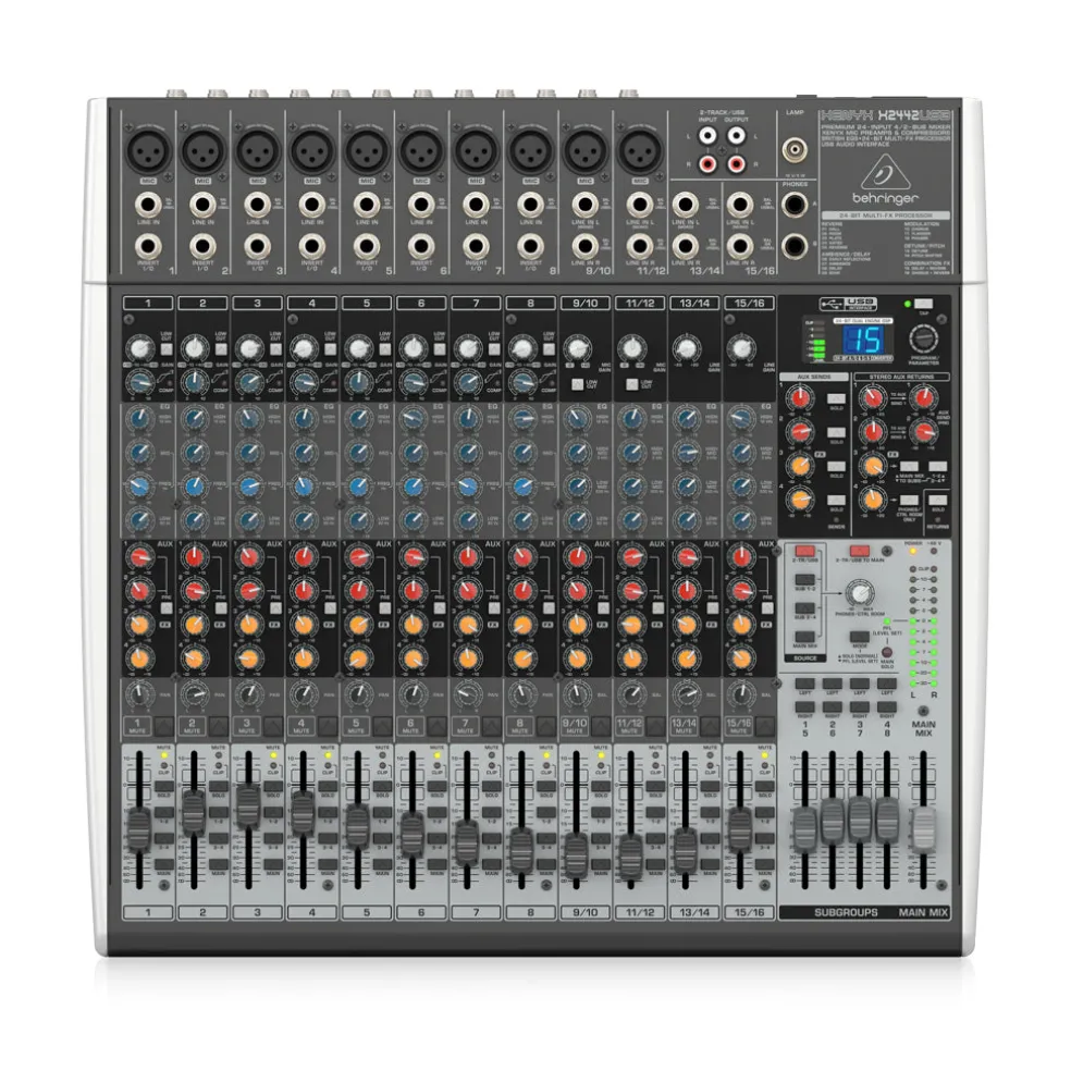 The feature-packed XENYX X2442USB mixer allows you to effortlessly achieve premium-quality sound thanks to 10 onboard studio-grade XENYX Mic Preamps and ultra-musical “British” channel EQs – with a semi-parametric mid band for the maximum flexibility in sound sculpting. And our easy-to-use “one-knob” compressors provide total dynamic control for the ultimate in punch and clarity, while respecting all the power and emotion you pack into every note. Add to this our 24-bit, dual-engine Multi-FX processor with 16 editable, professional-grade presets including reverb, chorus, fl anger, delay, pitch shifter and multi-effects – and the X2442USB becomes an incredibly versatile mixer for your live performances. But the X2442USB wasn’t just designed to handle your live gigs; it also provides the state-of-the-art tools you need to make stunning, professional-quality recordings. Along with the built-in USB/audio interface, the XENYX X2442USB comes with all the recording and editing software needed to turn your computer system into a complete, high-performance home recording studio.