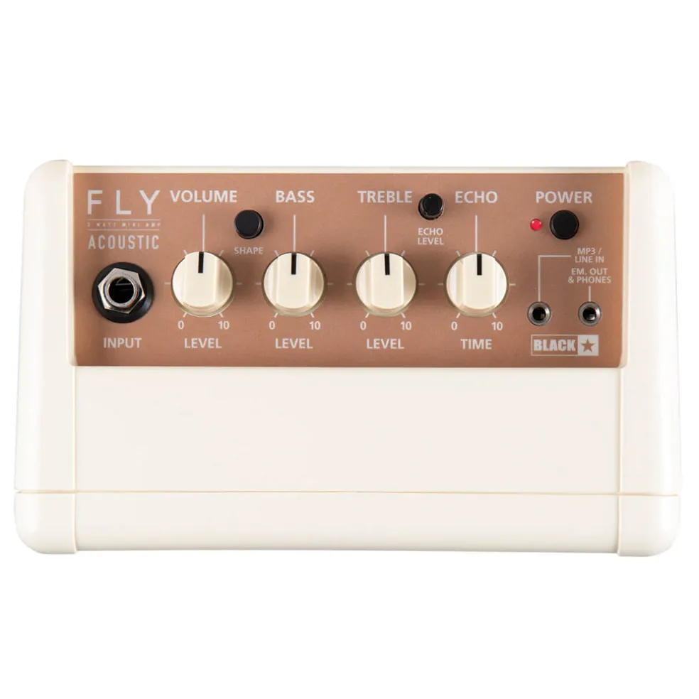 Whether your acoustic guitar is a parlour, dreadnought, or grand auditorium the FLY 3 Acoustic will give you more. From filling out your sound to reach more people, or angled back to act as a personal monitor, its natural sound reproduction will enhance your performance. The two switchable EQ shapes give you either a flat response or a mid-cut with some low and high boost, and the built in echo effect adds a natural ambience to make playing a pleasure. As with FLY products they have great battery life and the option to add the FLY 103 Acoustic powered cabinet to create a stereo 6 Watt set-up. Also available in the popular pack format including the FLY PSU-1. Get a fuller bodied sound now, with FLY 3 Acoustic.