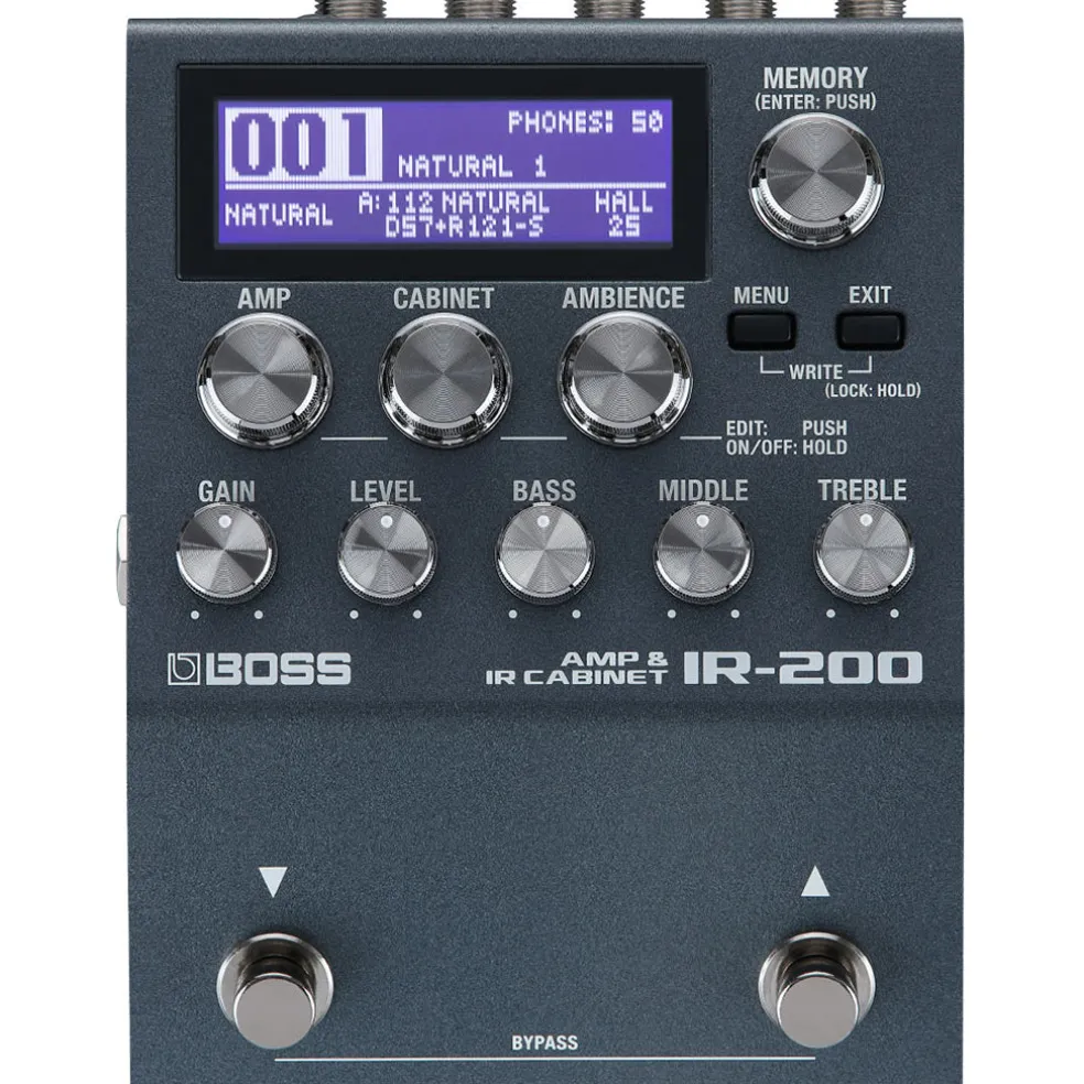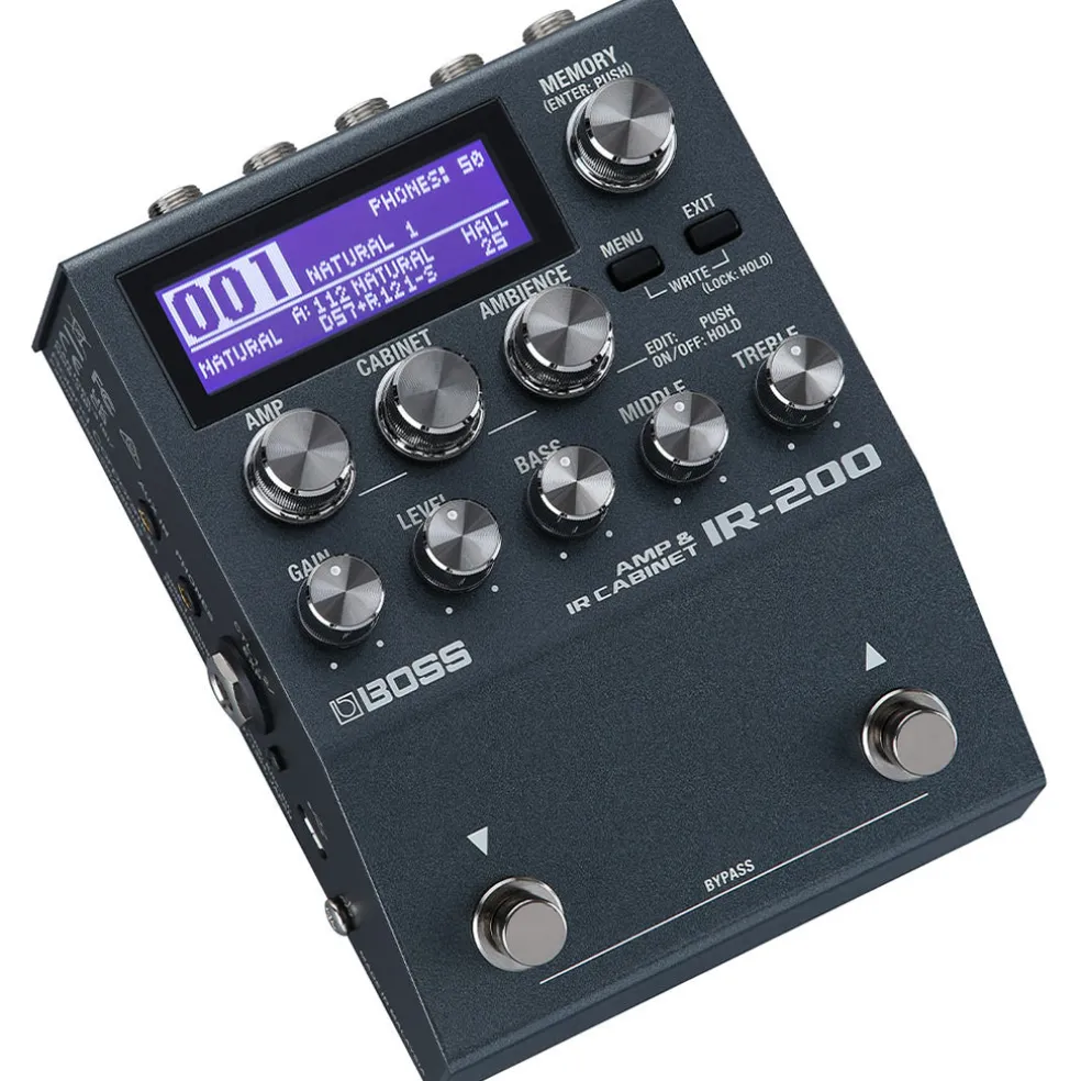 Introducing the IR-200, the most advanced compact amp/IR solution available. This powerhouse stomp brings next-level performance to direct sound for guitar and bass, offering exceptional audio quality, premium amps, deep sound shaping, and instant sound recall with 128 memories. Over 150 hi-res cab impulse responses from BOSS and Celestion Digital are on board, plus 128 locations for loading your own mono or stereo IRs.