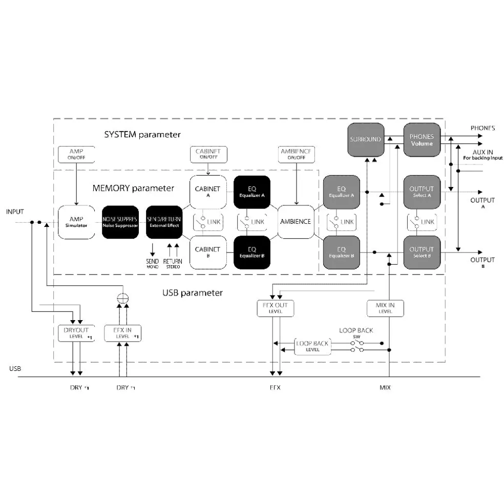 - Effects loop with mono send and mono/stereo return, with selectable pre-cab or post-EQ positioning