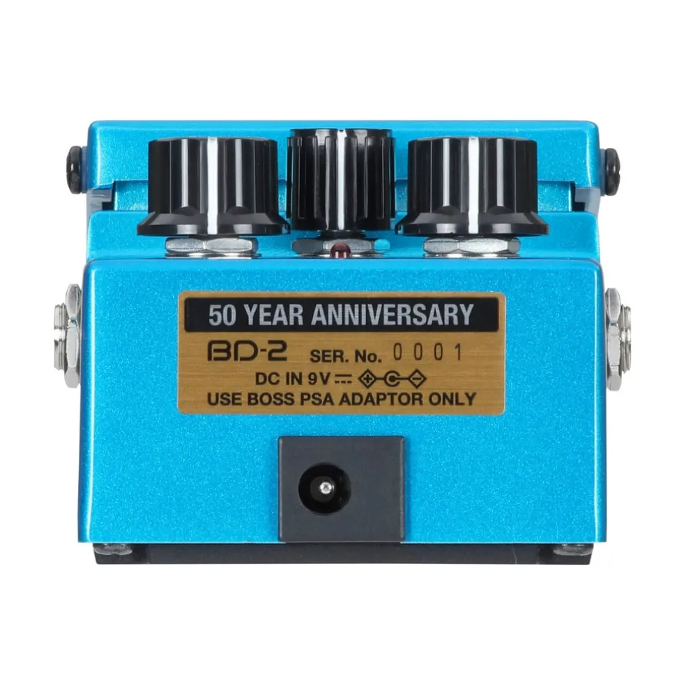 Marking the celebration of BOSS’s 50th anniversary, the limited-edition BD-2-B50A Blues Driver sports a metallic finish, silver thumb screw, and commemorative 50-year anniversary emblem. Appearing in exclusive livery with a dedicated 4-digit serial number and bespoke packaging, the BD-2-B50A features the same beloved circuitry as the standard production BD-2 Blues Driver. This collectible version is available in strictly limited numbers of no more than 7,000 units worldwide.