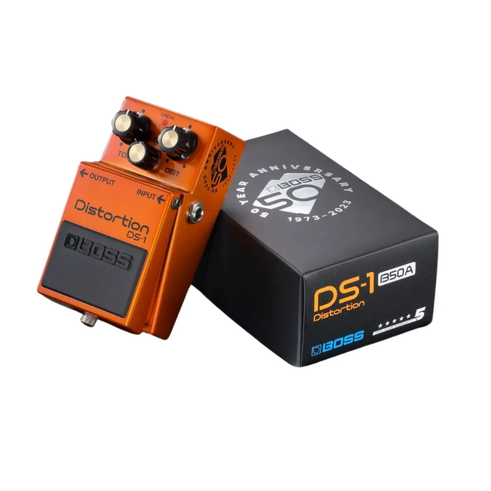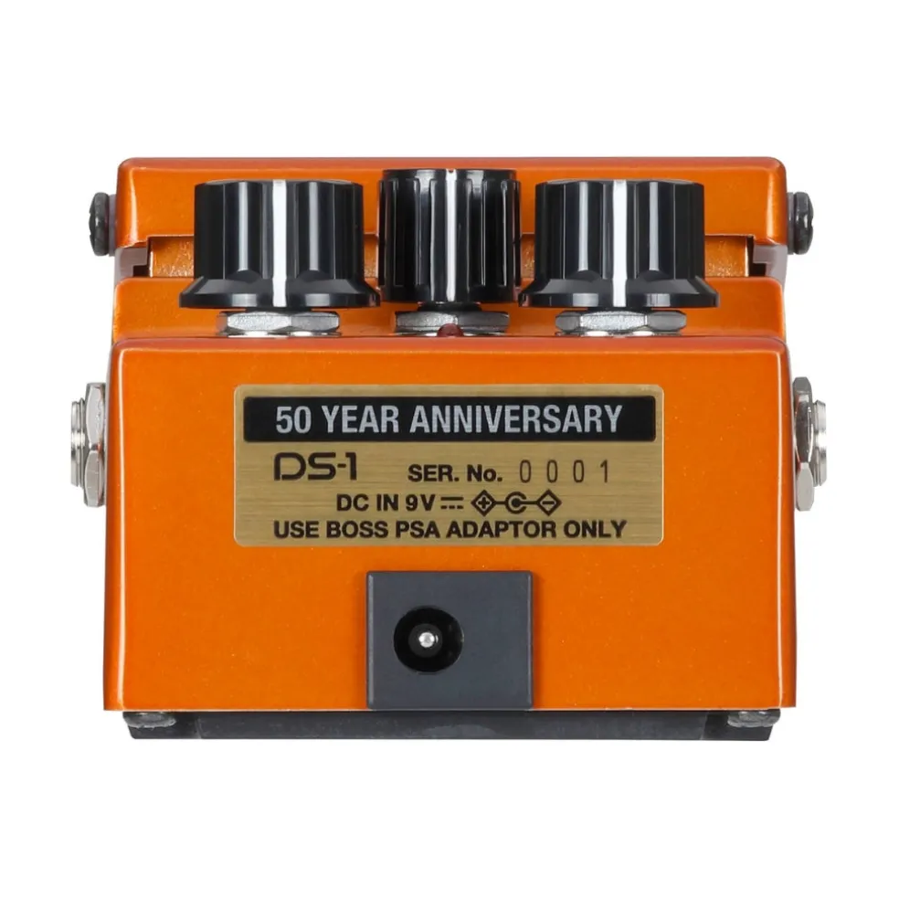 Marking the celebration of BOSS’s 50th anniversary, the limited-edition DS-1-B50A Distortion sports a metallic finish; silver thumb screw; gold-capped knobs; and commemorative 50-year anniversary emblem. Appearing in exclusive livery with a dedicated 4-digit serial number and bespoke packaging, the DS-1-B50A features the same beloved circuitry as the standard production DS-1 Distortion. This collectible version is available in strictly limited numbers of no more than 7,000 units worldwide.