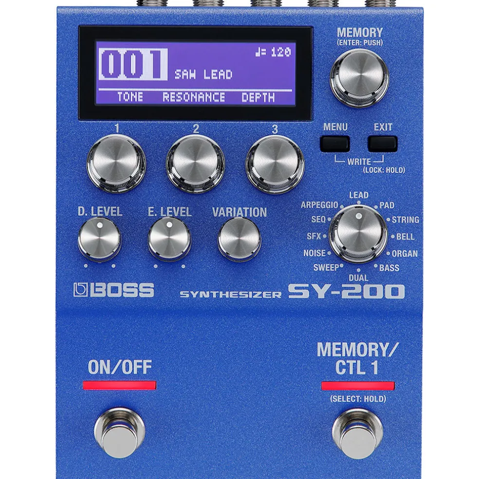 Offering a universe of rich, analog-inspired polyphonic tones in a small footprint, the SY-200 makes it simple to weave BOSS’s expressive guitar and bass synth technology into all of your musical journeys. Building on the fun, instant-gratification experience of the acclaimed SY-1, this blue inspiration machine features an expanded sound set, more tone-shaping possibilities, and 128 memories for storing your sonic creations. Two onboard footswitches provide deep real-time performance control, and you can take things even further with external footswitches, an expression pedal, and MIDI.