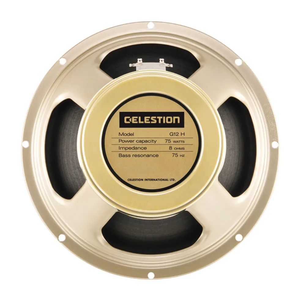 It delivers 75-watts of power handling with ease and has unmistakeable G12H tone, with a tighter low end than the G12M-65 Creamback and a punchier, more dynamic high end. The H magnet brings additional focus, body and girth to the Creamback tone. It thickens single notes, resulting in a highly articulate, vocal character. These additional characteristics mean that the G12H-75 Creamback offers exceptional performance when used for lead guitar and sounds massive loaded into a 4×12 cab!