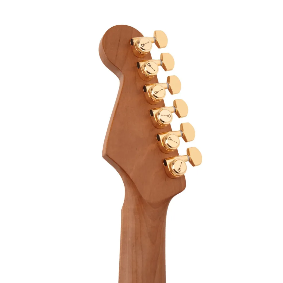 Taking our modern DK24 platform up a notch, this model’s premium modern features include a five-way blade pickup switch, Stratocaster®-style skirt knobs for the volume (with 500K EVH® Bourns® low friction potentiometer) and no-load tone controls, Gotoh® Custom 510 tremolo bridge, Charvel-branded locking tuners and more.