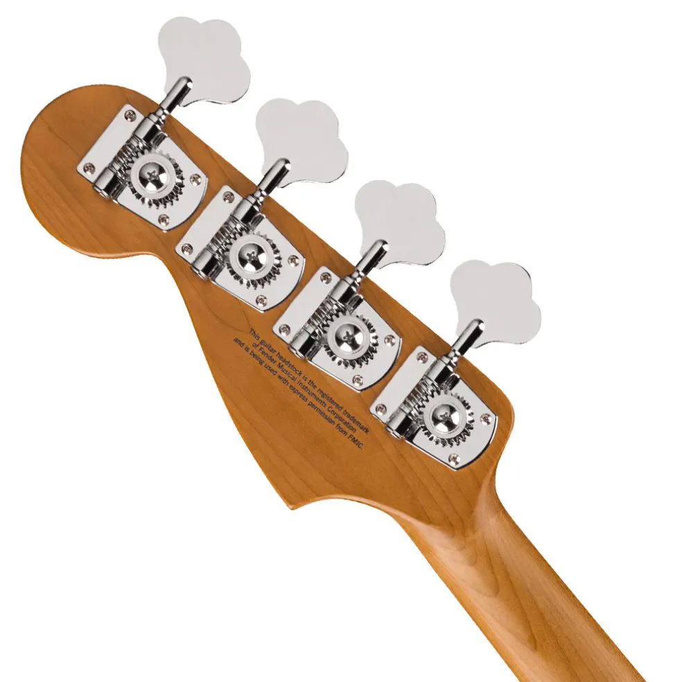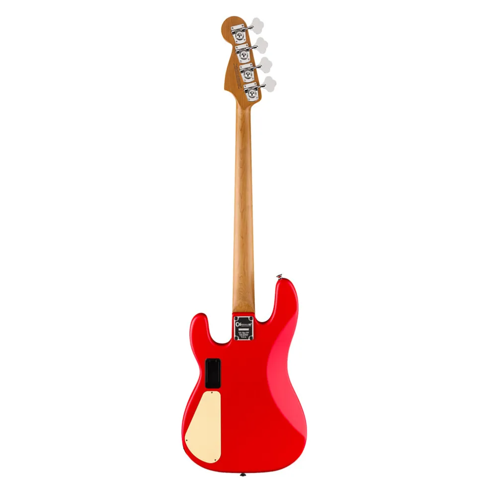 This 4-string bass is presented in a Natural Mahogany and Satin Ferrari Red finishes with chrome hardware, cream pickup covers and licensed Fender® Precision Bass® headstock shape.