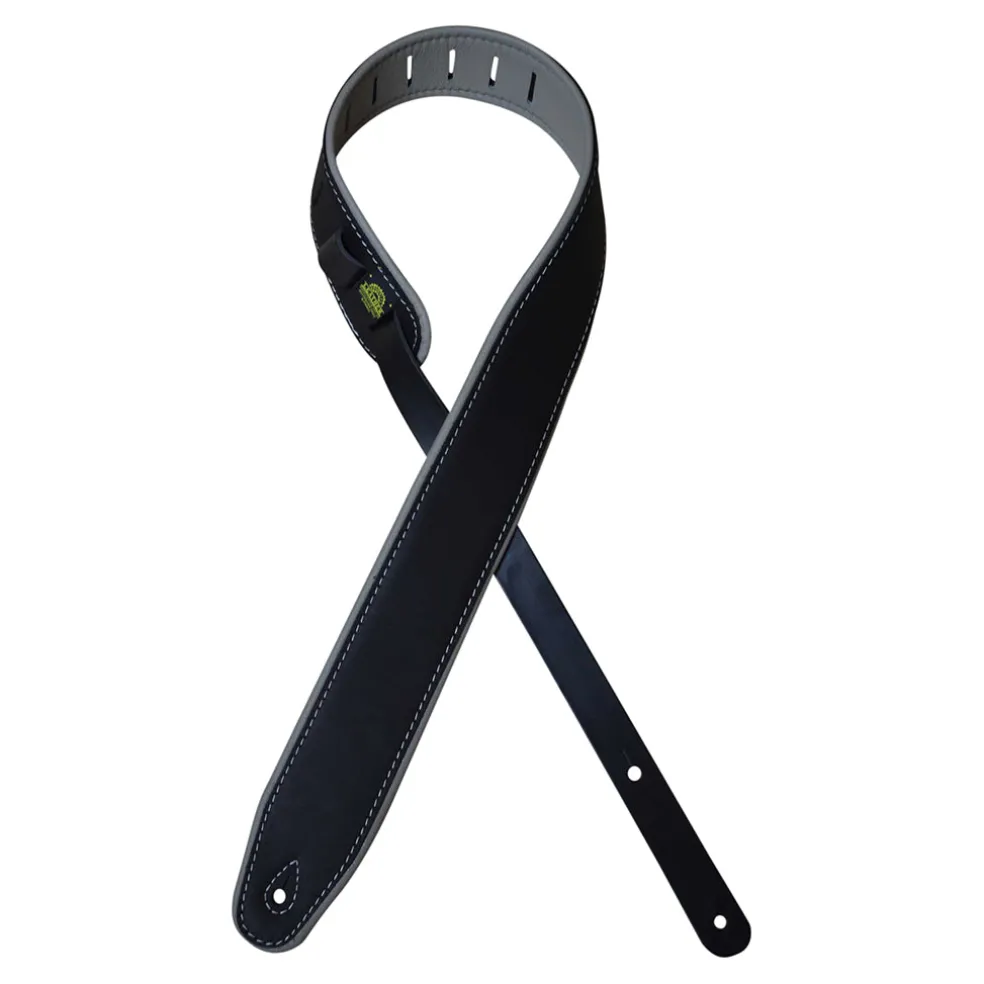 Colonial Leather – 2.5″ Padded Upholstery Leather Guitar Strap – Black & Grey