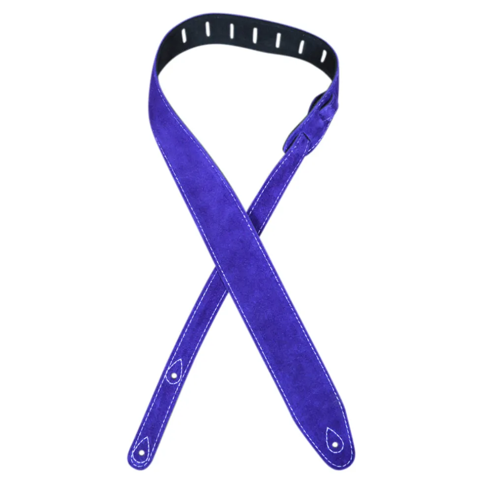 2.5 violet double suede backed and stitched suede guitar strap. Billet adjustable in length from 80cm to 135cm. Made in Australia