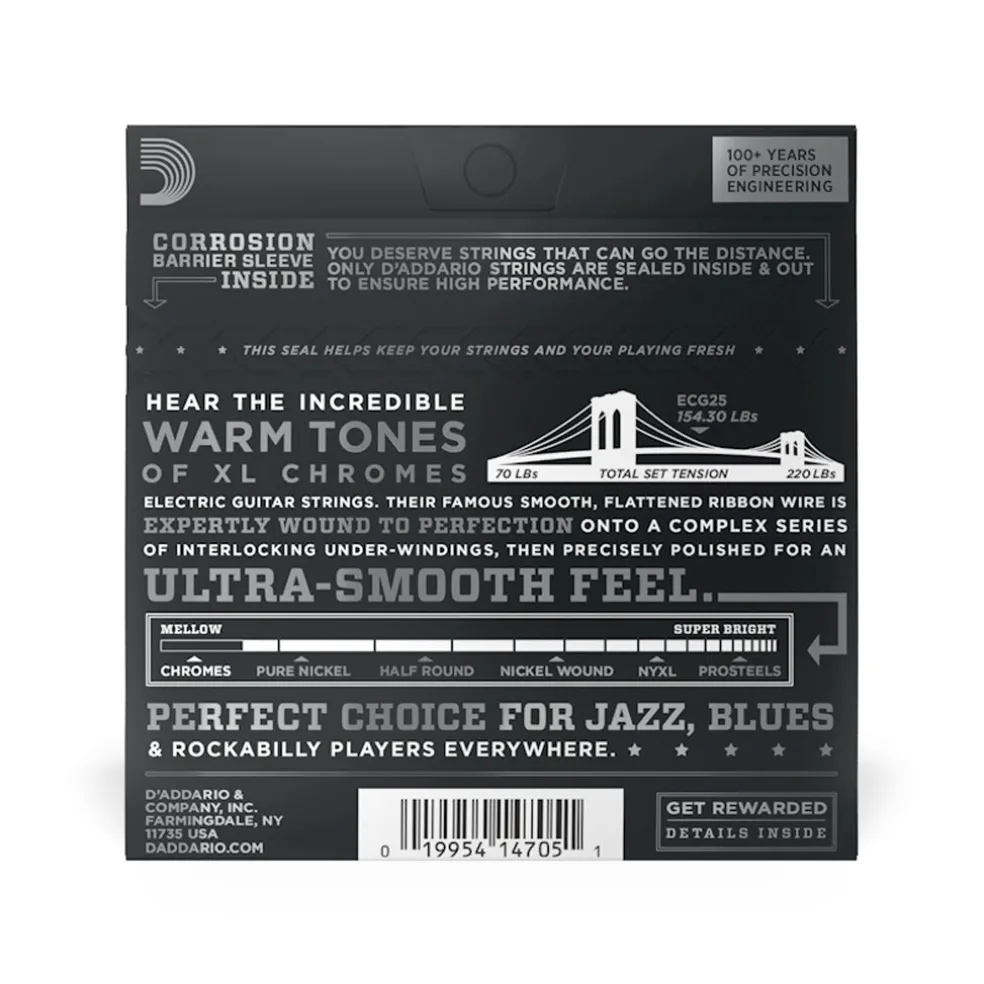 - Like all D’Addario electric guitar strings, XL Chromes are made with our proprietary Hex-Core, ensuring perfect intonation, consistent feel, and reliable durability.