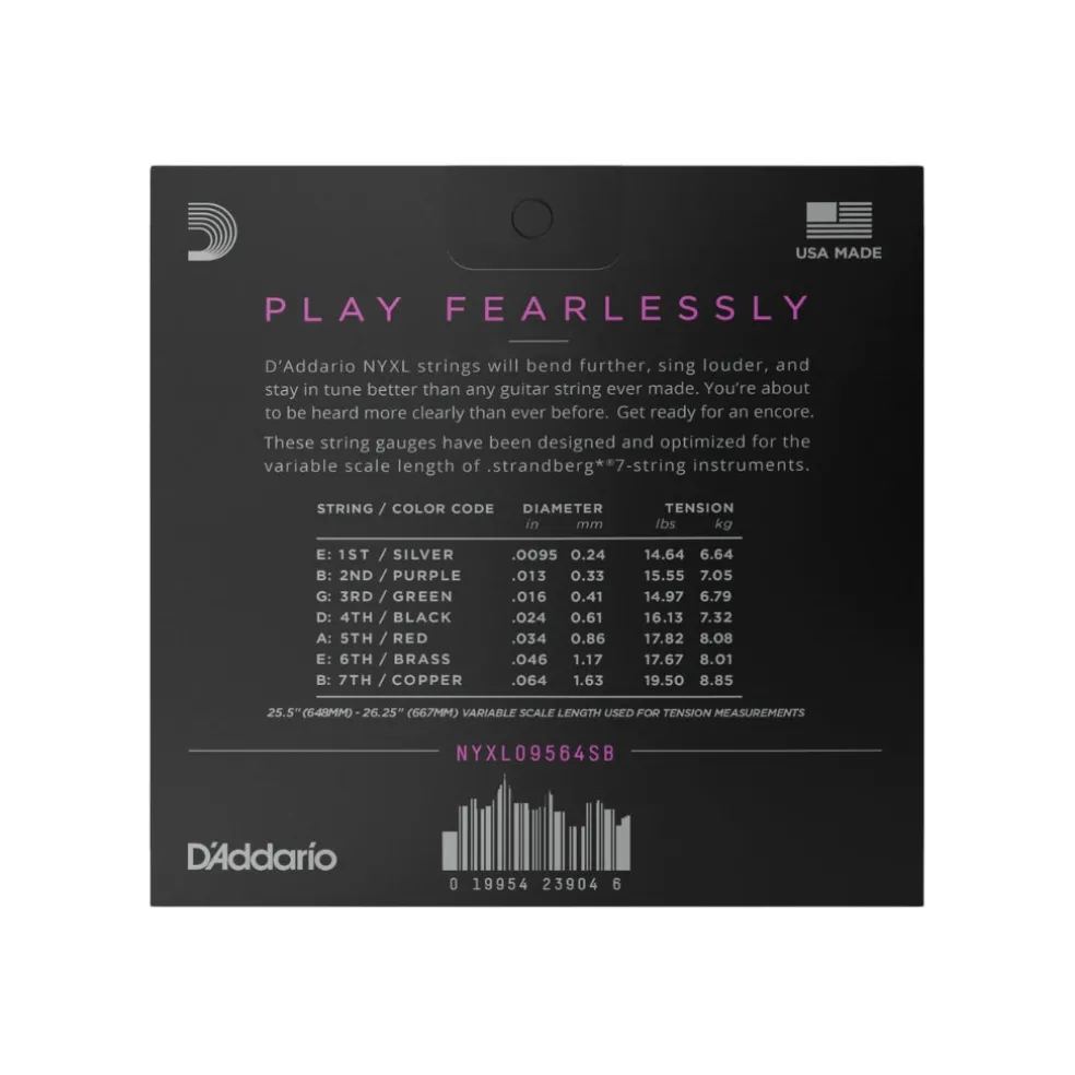 D'Addario NYXL09564SB NYXL Nickel Wound Electric Guitar Strings – .0095-.064 Custom Light 7-string