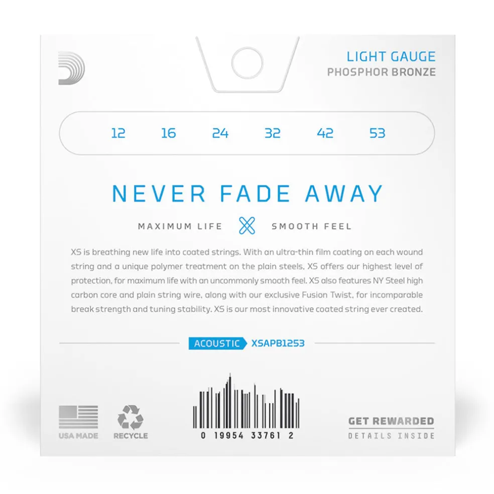 D'Addario XS Phosphor Bronze Acoustic Guitar Strings – 12-53