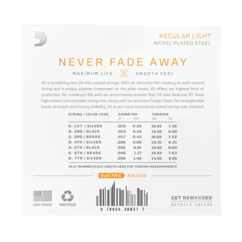 Unleash clarity, power, and durability with D’Addario XSE1056 XS Nickel-Plated Steel Coated Electric Guitar Strings—designed specifically for 7-string players who demand long-lasting tone and peak performance. Featuring D’Addario’s most advanced XS ultra-thin coating, these strings deliver the longest life of any D’Addario electric set without compromising feel or sound.