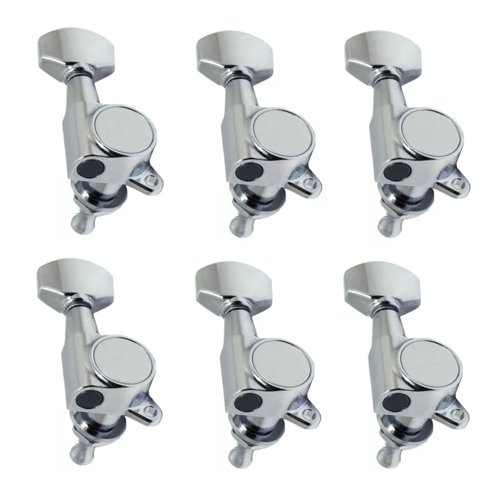 Dr. Parts 6 in-line small button single machine heads in chrome finish.