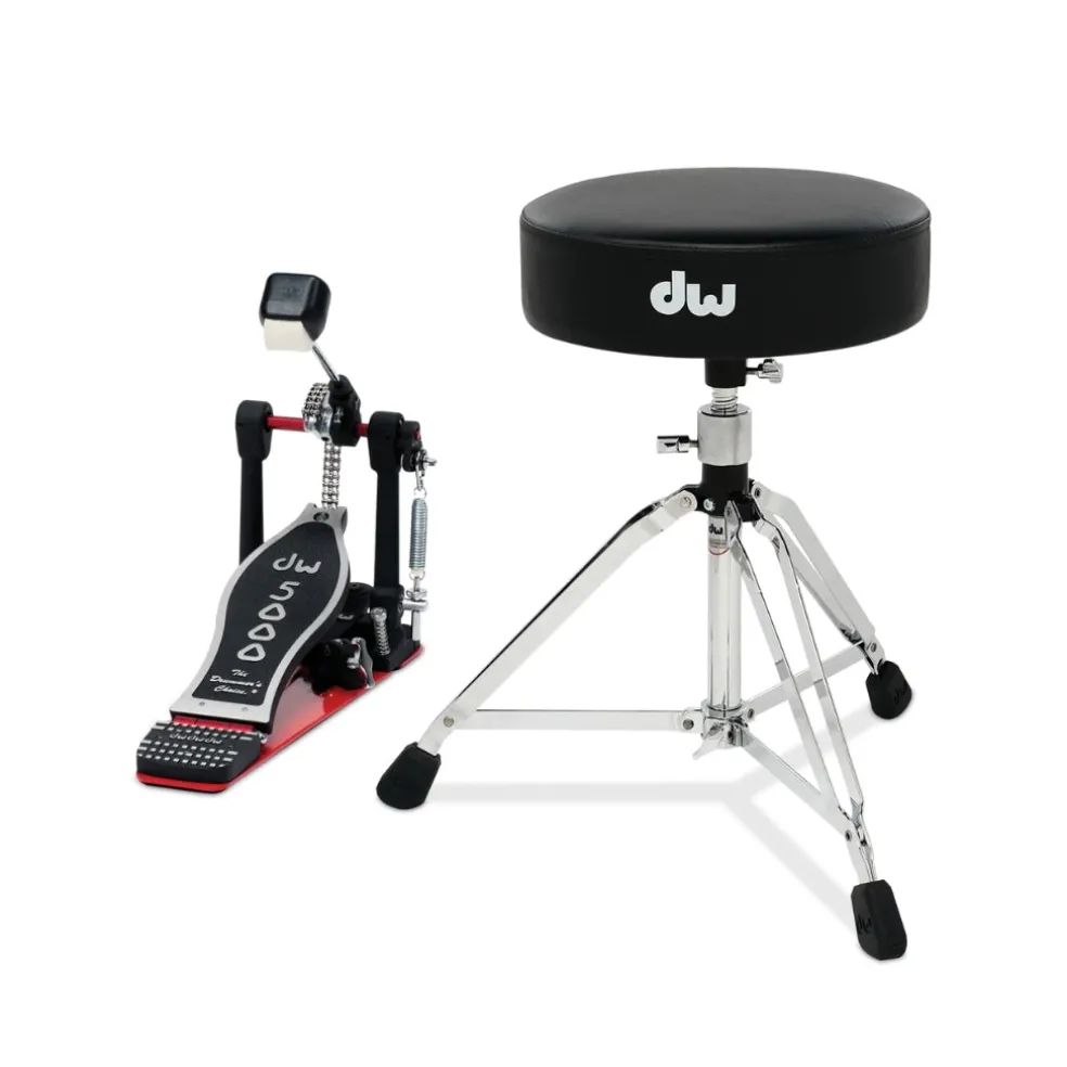 The DW 5000PK1 Hardware Pack is the perfect addition to any acoustic or electronic kit. It features the DW 5000AD4 dual chain drive bass drum pedal and DW 5100 round top throne. *