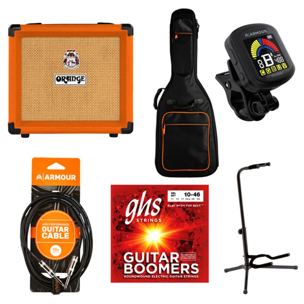 When choosing an electric guitar it is important to remember all the vital accessories that are required to truly make it sound its best. Save your time and money by getting the Armour-Orange Guitar Add On Pack that contains everything you need to get the most out of your guitar.