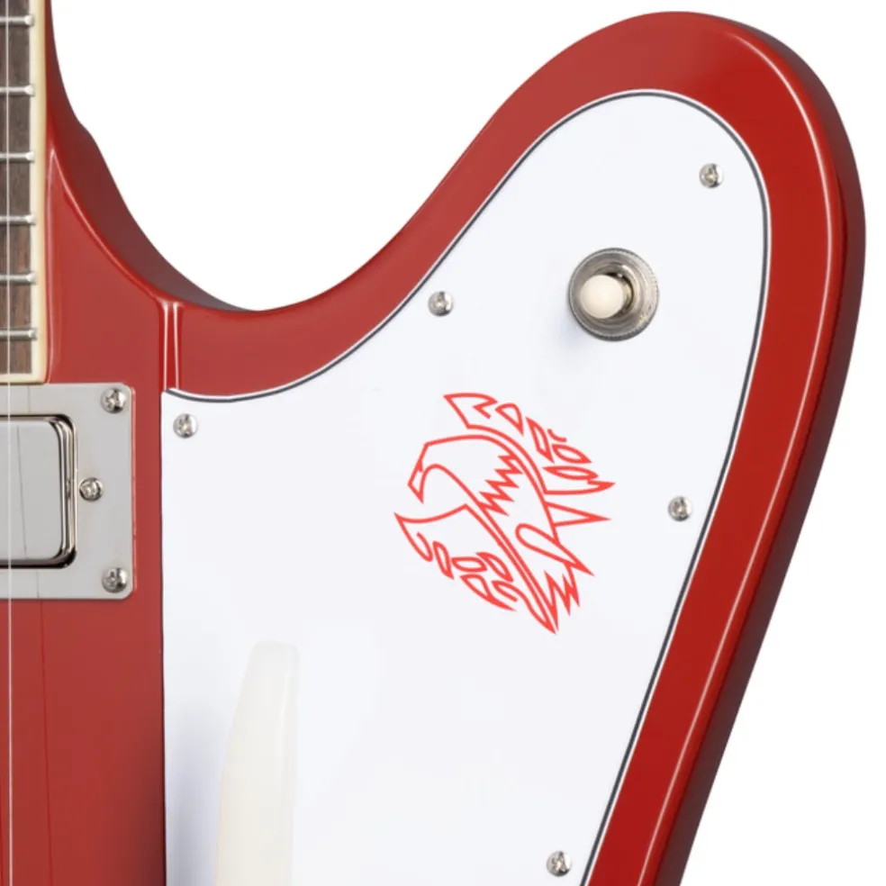 The Epiphone Inspired by Gibson Custom 1963 Firebird V delivers vintage Firebird specifications at an accessible price, including a 9-ply neck-through-body made of mahogany and walnut with mahogany body wings to either side. Kluson® planetary geared “banjo” tuners anchor the strings at the headstock, while an Epiphone ABR bridge and newly redesigned Maestro™ Vibrola™ with an engraved Epiphone logo hold things down at the other end. The electronics are also premium and include Gibson USA Firebird mini humbucker™ pickups with Alnico 5 magnets, CTS® potentiometers, Mallory™ capacitors, and a Switchcraft® 3-way pickup selector toggle switch and 1/4” output jack, giving this remarkable recreation not only the look but also the sound of a classic Firebird V. An Epiphone Inspired by Gibson Custom hard-shell case is also included.