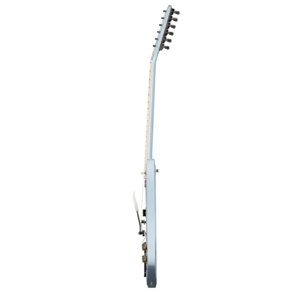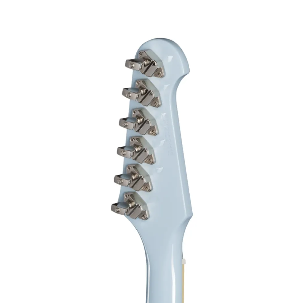 The Epiphone Inspired by Gibson Custom 1963 Firebird V delivers vintage Firebird specifications at an accessible price, including a 9-ply neck-through-body made of mahogany and walnut with mahogany body wings to either side. Kluson® planetary geared “banjo” tuners anchor the strings at the headstock, while an Epiphone ABR bridge and newly redesigned Maestro™ Vibrola™ with an engraved Epiphone logo hold things down at the other end. The electronics are also premium and include Gibson USA Firebird mini humbucker™ pickups with Alnico 5 magnets, CTS® potentiometers, Mallory™ capacitors, and a Switchcraft® 3-way pickup selector toggle switch and 1/4” output jack, giving this remarkable recreation not only the look but also the sound of a classic Firebird V. An Epiphone Inspired by Gibson Custom hard-shell case is also included.