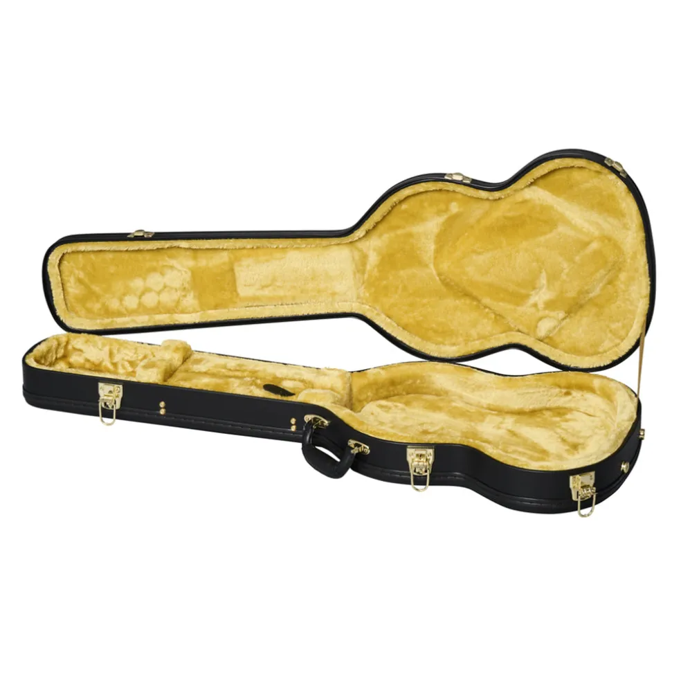 Black Hardshell with Goldenrod Interior, Gold Hardware, and Inspired by Gibson Custom Logo |