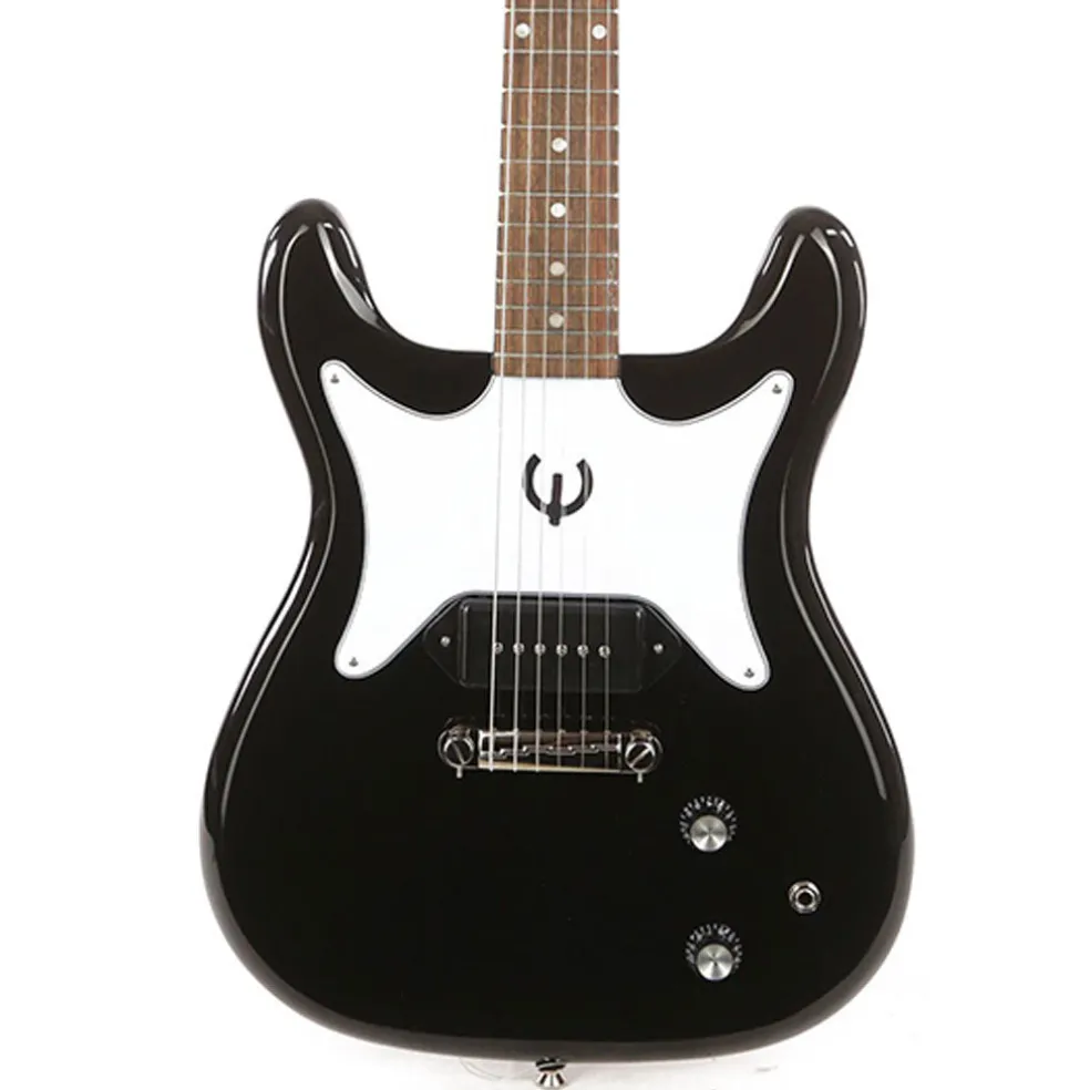 First introduced in 1958, the Epiphone Coronet is one of Epiphones first and most successful original solid body electric guitar designs. The latest version brings back many of the features of the early Coronet models including the symmetrical double-cutaway mahogany body with a single Epiphone PRO™ P-90 Dogear pickup, three on a side reduced sized Kalamazoo headstock with Epiphone Bikini badge and ivory button tuning machines, and a white butterfly pickguard with foil E logo. The Epiphone Coronet comes equipped with a glued-in mahogany neck with a medium C profile, Indian laurel fretboard with 12 radius and 22 medium jumbo frets, 1 volume and 1 tone control with CTS® potentiometers, and an Epiphone Lightning Bar compensated wraparound bridge.