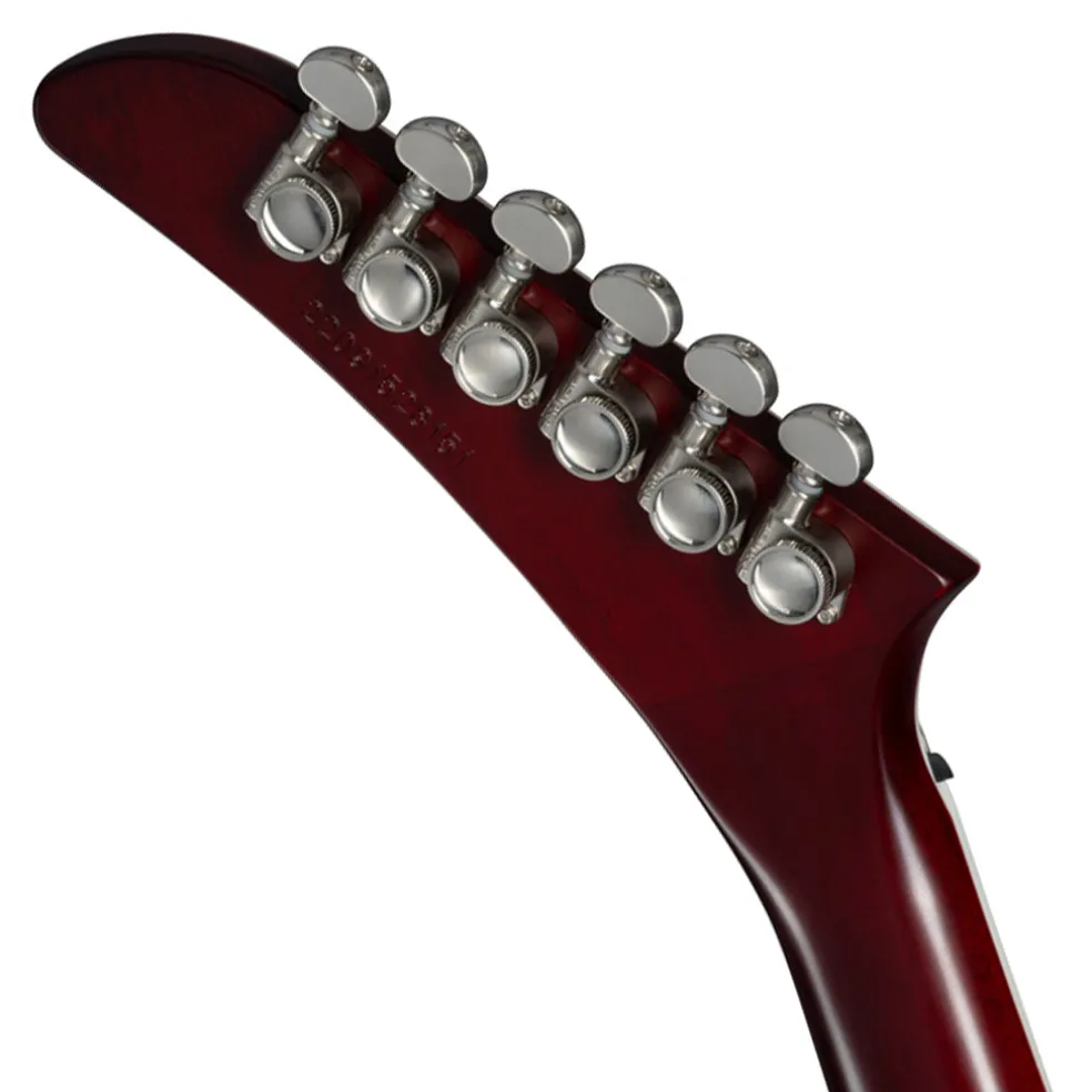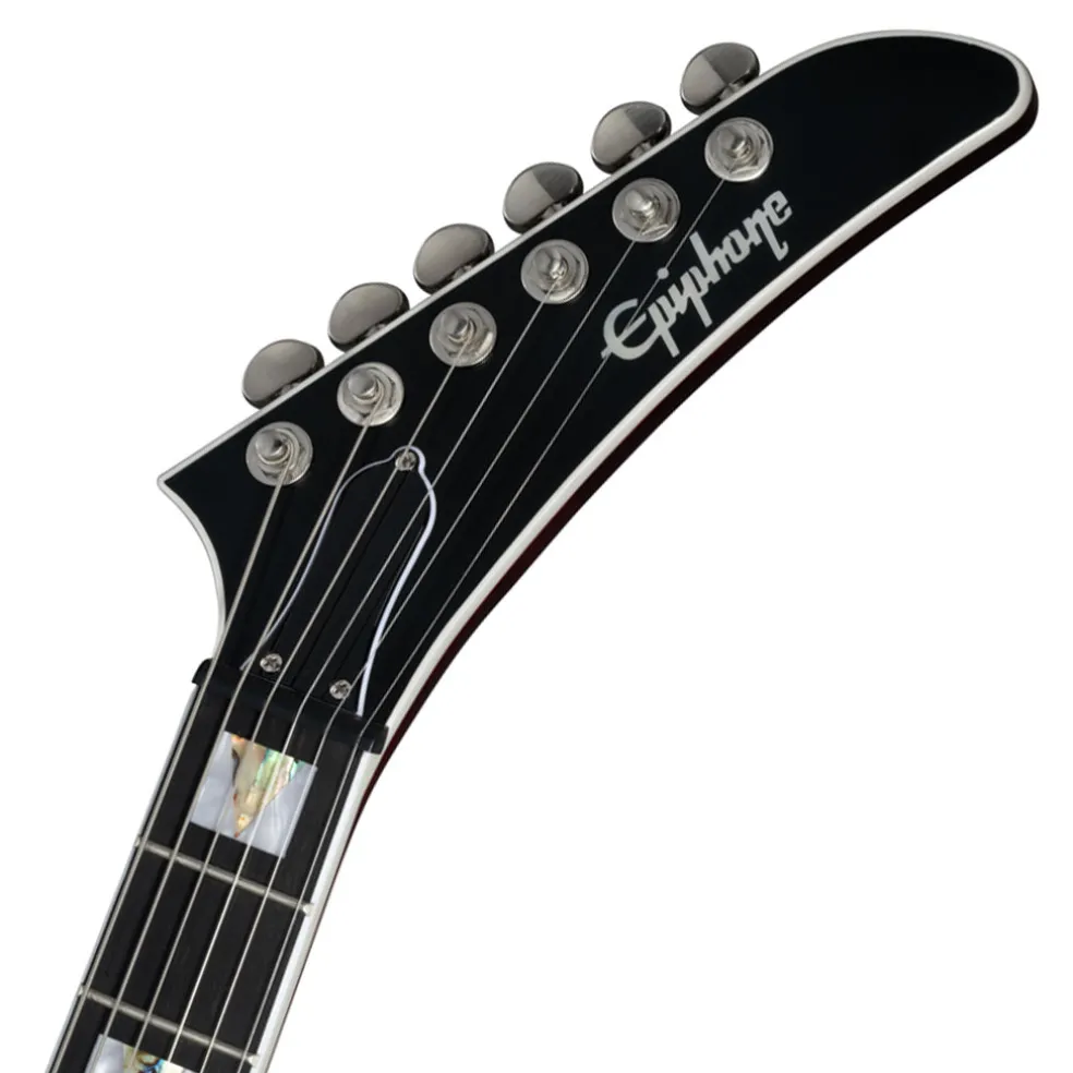 The newly reimagined Epiphone Prophecy collection features iconic Inspired by Gibson ™ body shapes with a modern twist for players seeking to break tradition and set new standards in speed, sound, and technique. The new Extura body style combines the Gibson Explorer™ with the narrower waist and deeper cutaway of the Gibson Futura™. Front-and-centre is a pair of custom-voiced Fishman Fluence® pickups that deliver three distinct tones – a warm Gibson BurstBucker™/”Patent Applied For” vintage humbucker ™, hot modern humbucker, and a shimmering, optimized single-coil sound, all accessed by push/pull Volume and Tone pots.