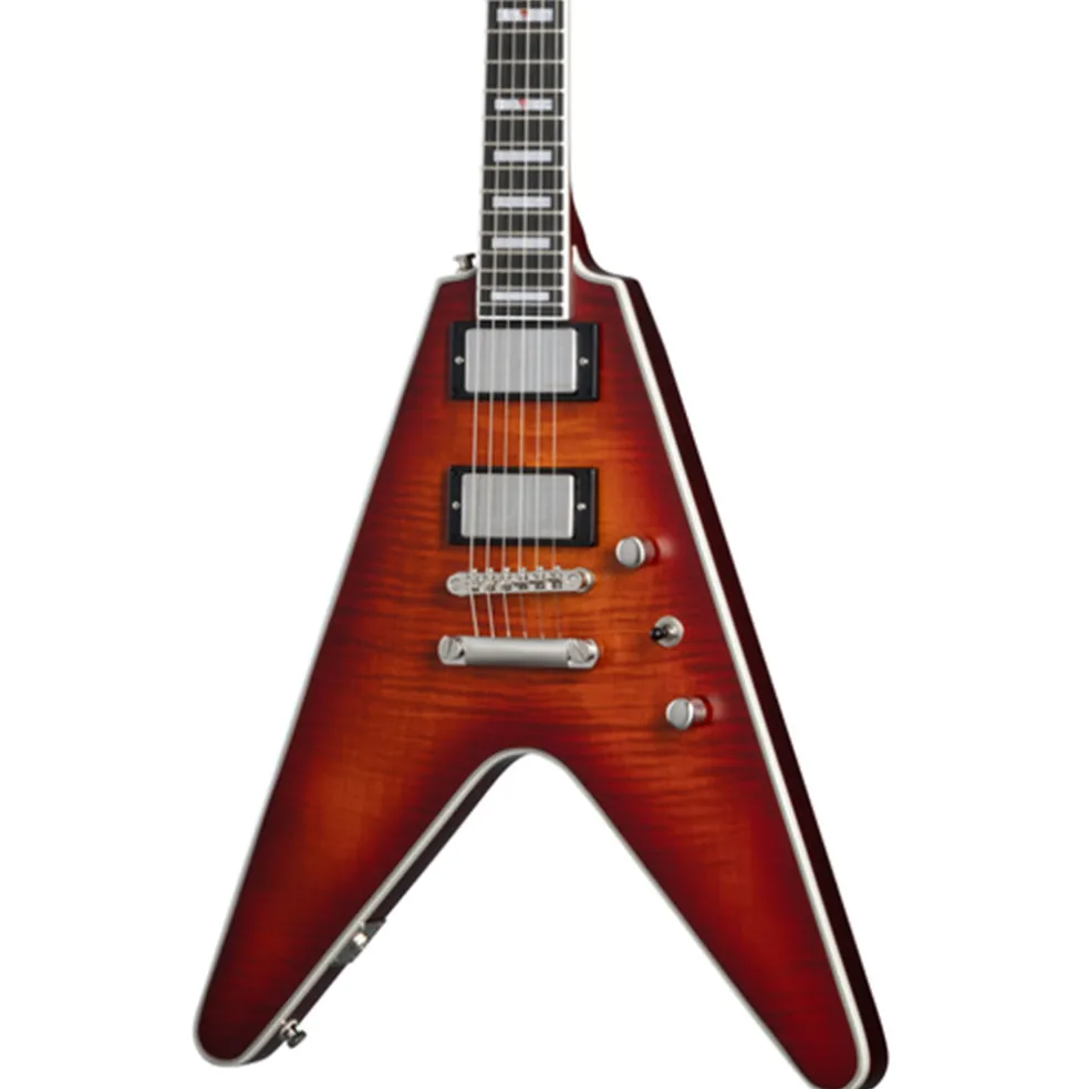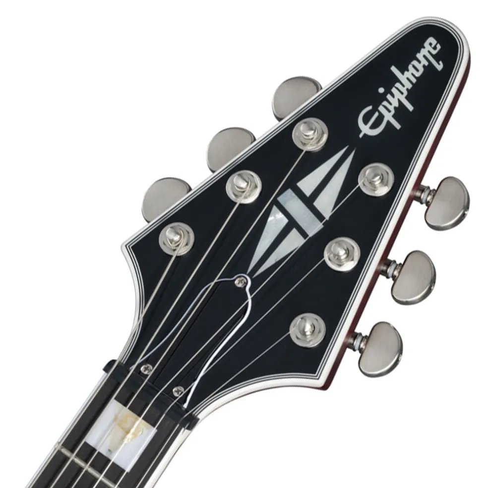 The Flying V™ Prophecy also includes Grover® locking Rotomatic® tuners, Epiphone’s LockTone™ Tune-O-Matic™ bridge and tailpiece for added sustain, a Graph Tech® NuBone® nut that boosts harmonic content and increases tuning stability, custom binding, ebony fretboard, jumbo frets, PosiLok strap buttons, and an asymmetrical SlimTaper™ neck for comfort and speed. A premium gig bag is included.