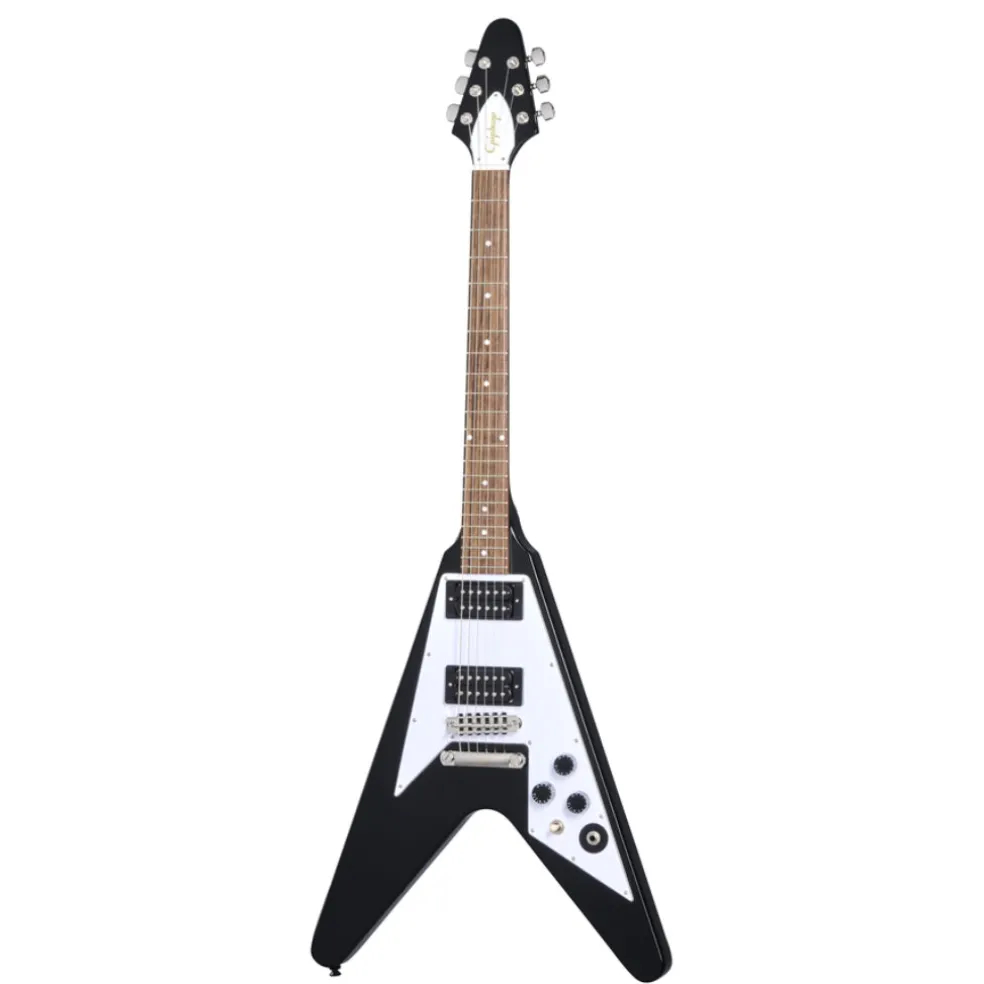 Metallica fans worldwide are familiar with Kirk Hammett’s 1979 Flying V. It was Kirk’s first Gibson and established his passion for Gibson guitars. Its purchase was inspired by famous Flying V™ players Kirk admired and because he was looking for a fuller sound. And what a sound! Kirk still plays the original guitar to this day, and used it on all the early Metallica albums, including Kill ‘Em All, Ride the Lightning, Master of Puppets,… And Justice for All, and The Black Album, making it one of the most important heavy metal guitars of all time. Now Epiphone is partnering with the Gibson Custom Shop to release the Epiphone Kirk Hammett 1979 Flying V, a meticulous recreation of Kirk’s prized original. It features a mahogany body, a one-piece mahogany neck with volute, Grover® Rotomatic® machine heads with “spade” buttons, and a custom bridge. The electronics are also top-notch, with a pair of Gibson USA Calibrated T-Type humbucker™ pickups wired to CTS® potentiometers and an Orange Drop® capacitor, and a Switchcraft® 3-way pickup selector toggle switch and a 1/4” output jack. A Kirk Hammett logo adorns the rear of the headstock, and a black hardshell case with a red plush interior is also included.