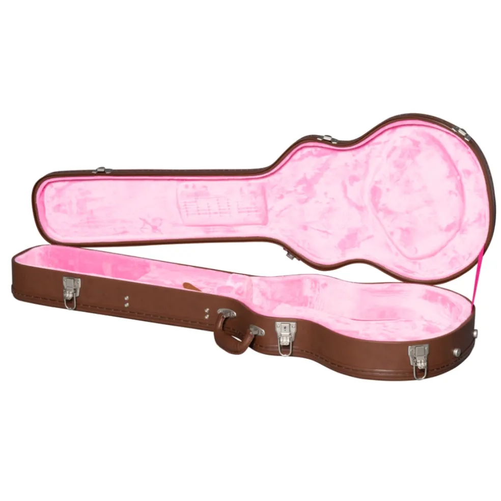 The Epiphone Kirk Hammett Greeny Les Paul Standard is a collaboration between Epiphone and the Gibson Custom Shop. This exceptional guitar was inspired by Kirk’s legendary original and allows players around the world the opportunity to experience some of the magic of Greeny for themselves. It features premium components, including Gibson USA Greenybucker pickups with the neck pickup reverse mounted and complete with a reverse polarity magnet, a Switchcraft® pickup selector and 1/4 output jack, CTS® potentiometers, Mallory™ capacitors, and Grover® Rotomatic® tuners with spade-style buttons on a Gibson-style “open book” headstock. A vintage-style brown and pink hard-shell case is also included