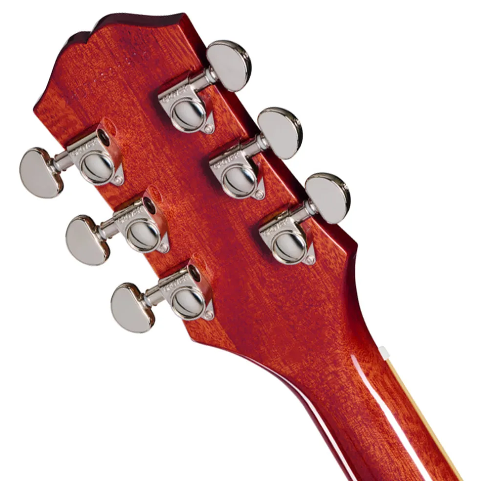 The Les Paul Standard 60s models from the Epiphone Inspired by Gibson™ Collection recreate the look, feel, and sound of the early 1960s-era Les Pauls. They feature a mahogany body with a maple cap, and the models with translucent finishes have an added AAA flame maple veneer visible through the finish for that classic “flame top” look. The mahogany neck sports a laurel fretboard with pearloid trapezoid inlays, 22 medium jumbo frets, and a fast-playing 60s SlimTaper™ profile. The headstock is equipped with quality Grover® Rotomatic® tuning machines and a Graph Tech® nut for rock-solid tuning stability, so you can spend more time playing and less time tuning.