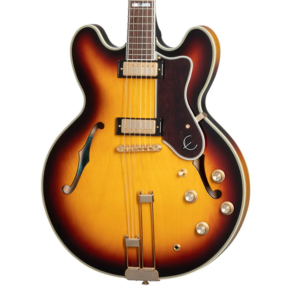Epiphone ProBucker™ mini humbuckers™ deliver a wide dynamic tonal range that finds a voice in nearly any genre. Gold hardware, including a vintage-styled Frequensator™ Split Trapeze tailpiece, add to the simple, timeless aesthetic of this Epiphone legend.
