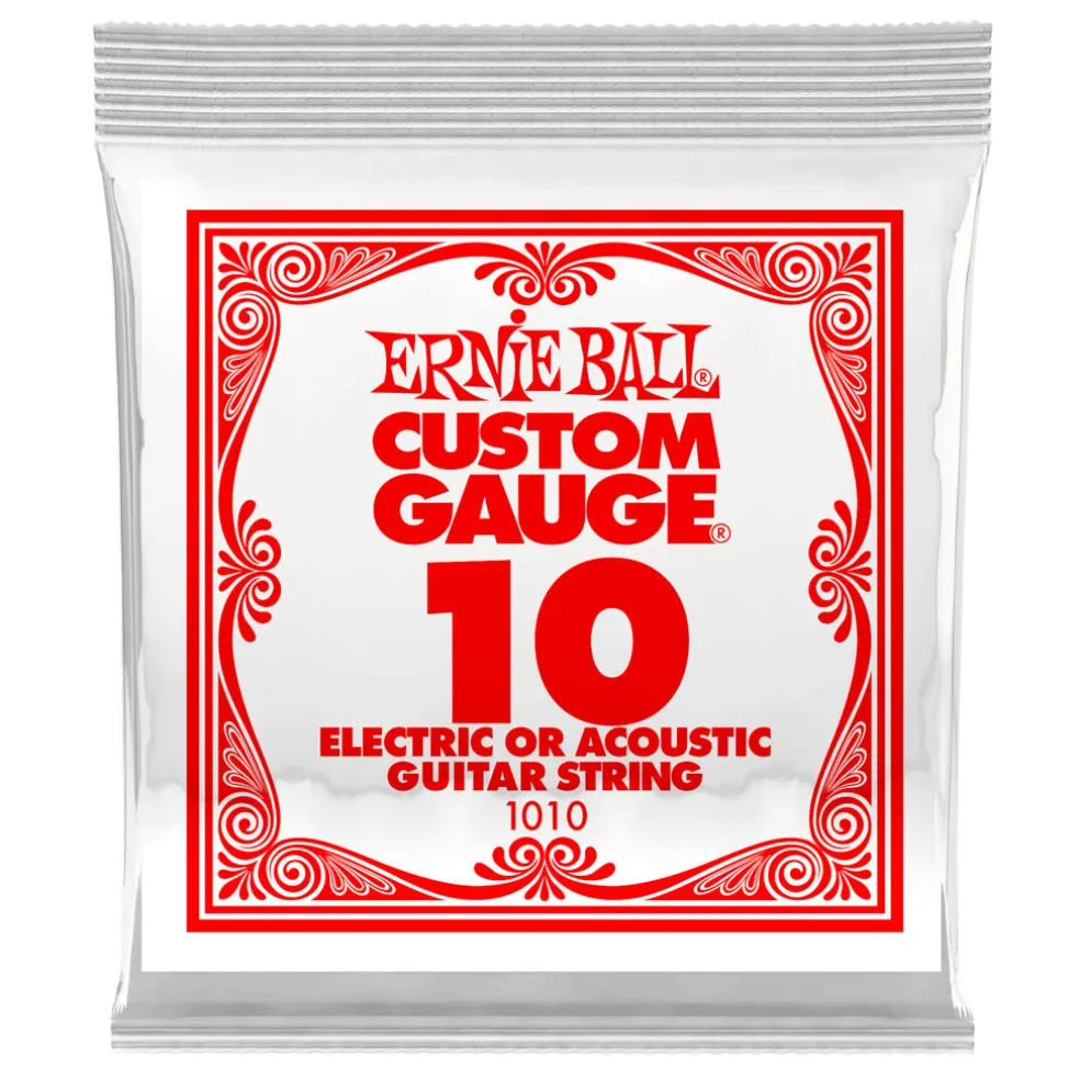 Ernie Ball Plain Steel Electric or Acoustic Guitar Strings are made of specially tempered tin plated high carbon steel used on electric and acoustic guitars. Ernie Ball revolutionized the market by offering Custom-Gauge single string options allowing guitarists to create personalized string sets.