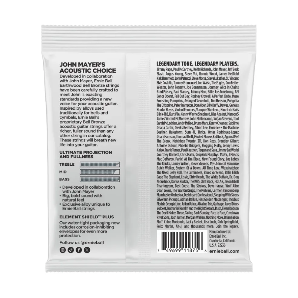 Developed in collaboration with John Mayer, Ernie Ball Earthwood Bell Bronze strings have been carefully crafted to meet John’s exacting standards providing a new voice for your acoustic guitar. Inspired by alloys used traditionally for bells and cymbals, Ernie Ball’s proprietary Bell Bronze acoustic guitar strings offer a richer, fuller sound than any other string in our catalog. These strings will breathe new life into your guitar!