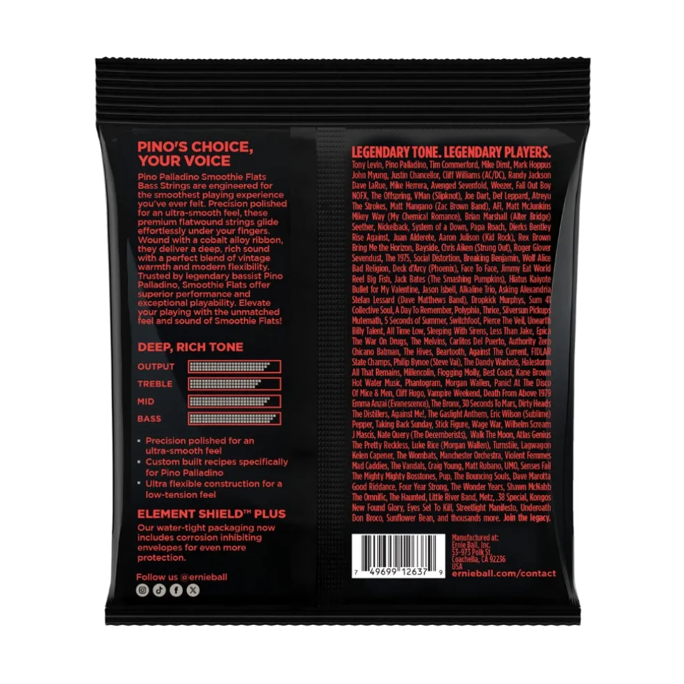 Ernie Ball 2748 Pino Palladino Smoothie Flats Electric Bass Guitar Strings – .038-.98 Extra Light