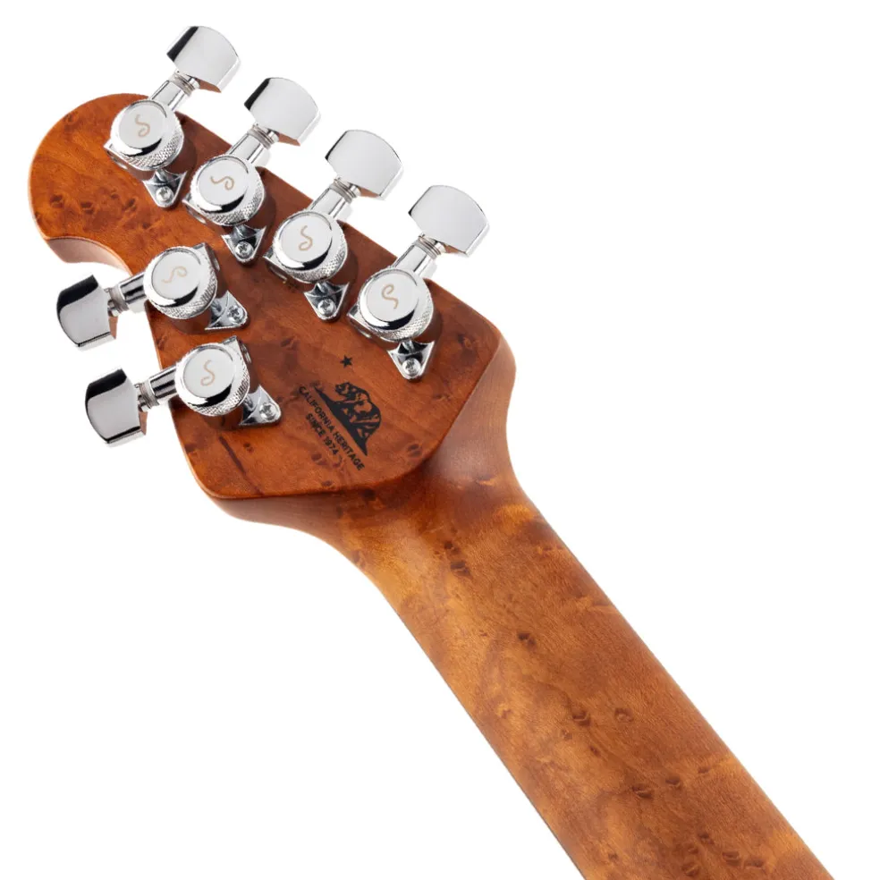The latest evolution of Steve Lukather’s signature guitar features an alder body with a figured roasted maple neck and rosewood fingerboard. The HH model is outfitted with newly designed custom Ernie Ball Music Man high-output humbucking pickups and the HSS model is equipped with the same, new bridge humbucker and also sports Ernie Ball Music Man’s renowned Cutlass single-coil pickups, providing players with amazing tonal versatility. Both pickup configurations are furnished with a 5-way switch and a 12dB boost push/push volume knob. The LIII comes standard with a super smooth floating Music Man vintage tremolo system.