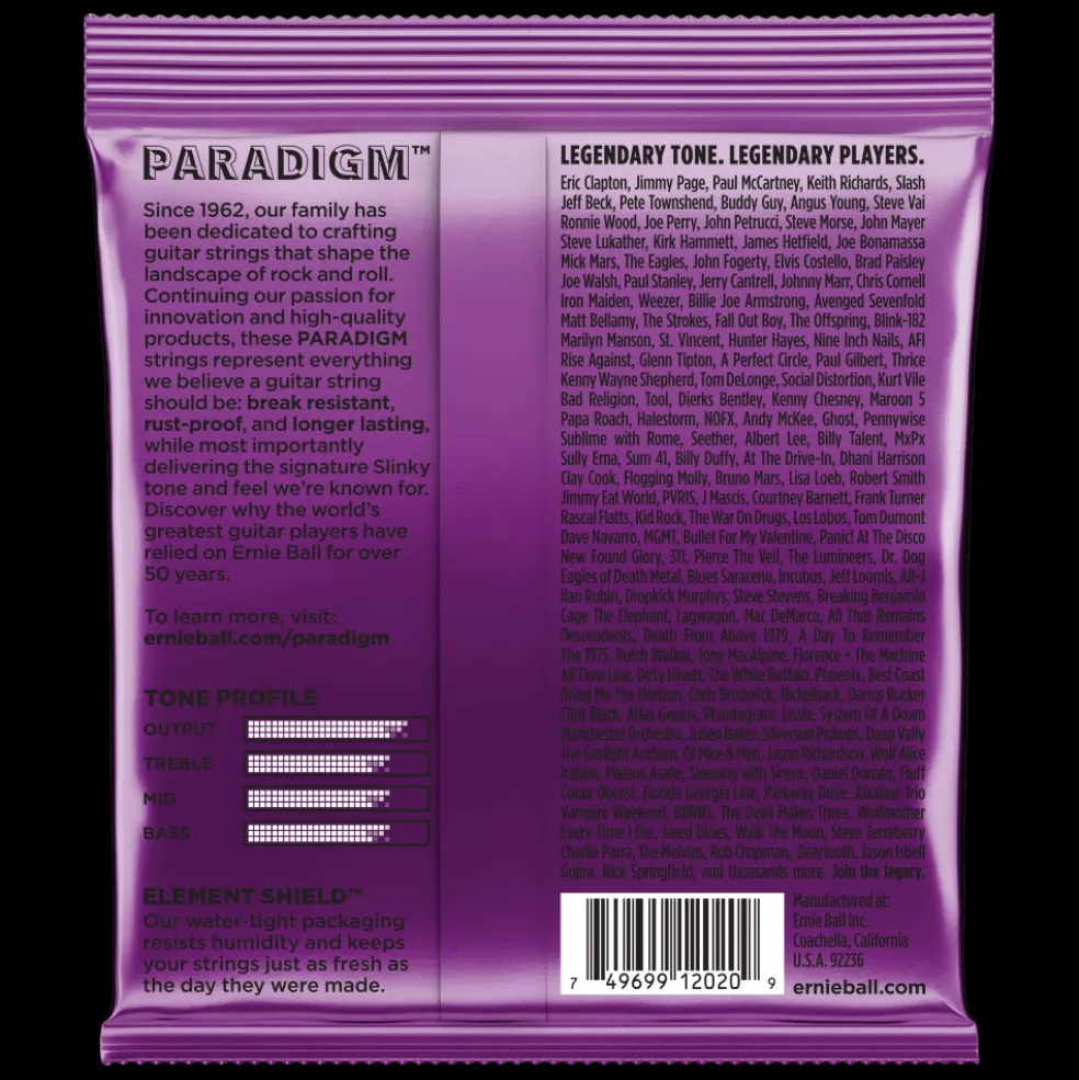 Ernie Ball Slinky Paradigm Electric guitar strings provide unprecedented strength and longer life while retaining 100 percent Slinky tone and feel. Ernie Ball’s industry-leading ultra-high-strength steel is included in both the wound and plain strings along with a patented reinforcement at the ball end twist of each plain string to provide superior tensile and fatigue strength for strings that lock into tune fast and hold up under the most stressful playing styles and conditions. The coupling of Ernie Ball’s Ever last Nano treatment with breakthrough plasma enhanced wrap wire provides added corrosion resistance and reduced accumulation of tone-robbing build-up and debris. Experience the first set of longer lasting strings that are worth playing with all benefits and no compromises.