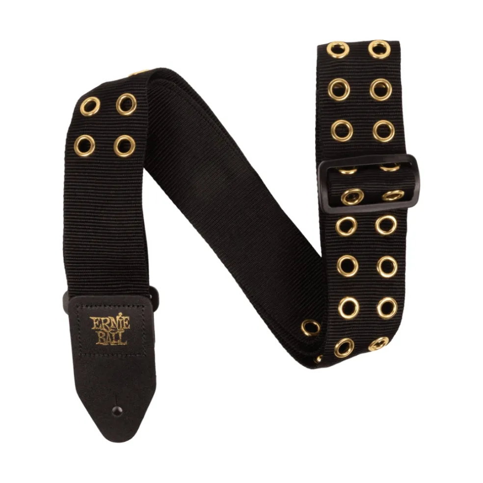The Ernie Ball Premium Guitar Strap – Hole Lotta Metal Gold is a stylish and durable accessory that combines comfort with iconic design. Made from strong, 2” wide polypropylene webbing, this strap ensures maximum durability and long-lasting performance. Featuring a bold Hole Lotta Metal Gold design, it is finished with the classic EB gold foil logo, adding a touch of luxury to your gear. The strap includes machine-stitched black leather ends for extra strength and a premium finish, while the Delrin adjustable buckles and connectors allow for a fully adjustable strap length ranging from 41” to 72”, providing a perfect fit for players of all sizes. Whether you’re performing or practicing, this strap offers both comfort and style.