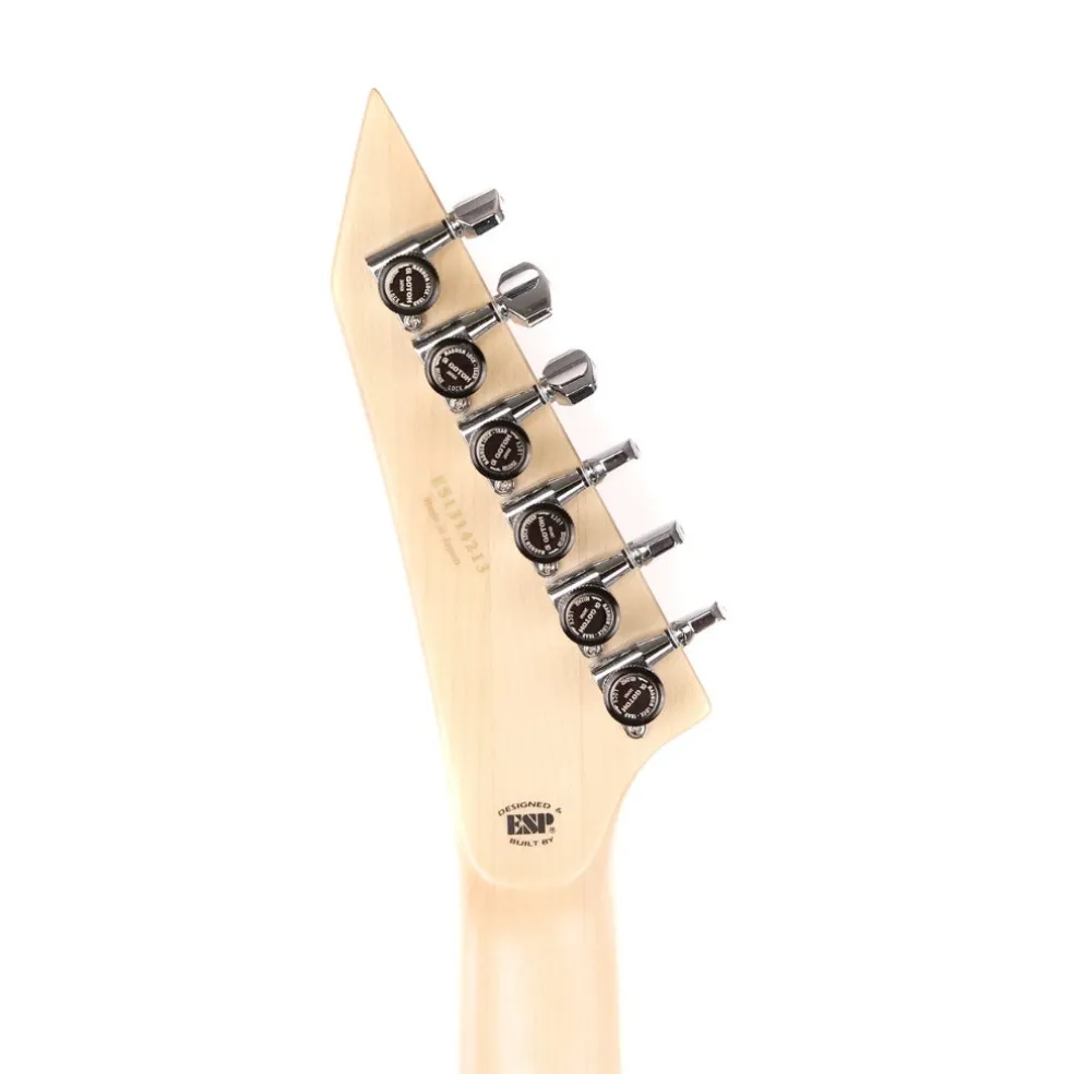 Built at our ESP factory in Japan, the ESP E-II Alexi Ripped is among the final guitars designed by Children of Bodom/Bodom After Midnight frontman Alexi Laiho, one of the world’s most beloved and influential figures in metal music. The E-II Alexi Ripped is offered in an offset V shape with neck-thru-body construction at 25.5” scale. It features a three-piece thin u-shaped maple neck with natural satin finish for smooth and fast playability, alder body wings, and an ebony fingerboard (scalloped from frets 19-24) with 24 extra-jumbo frets, sawtooth inlays, and glow-in-the-dark side markers. The Alexi Ripped model is the first Alexi Laiho Signature Series guitar with more than one pickup. It includes an EMG HZ F-H2 passive humbucker in the bridge position, a ceramic high-gain pickup that offers excellent presence and clarity with a punchy response, as well as an EMG HZ S2 passive stacked single coil in the neck for just the right mix of mids with a clear and full low end. It also includes an ESP MM-04 active boost switch, a preamp circuit with adjustable EQ settings and up to +18dB of boost when you need it! Designed for pro players, the E-II Alexi Ripped includes high-end components such as Gotoh locking tuners, ESP strap locks, a double-locking Floyd Rose Original bridge, and chrome hardware including a volume control, an inset three-way pickup selector, and boost switch. Available in Purple Fade Satin finish with painted black satin “ripped” pinstripes, with black satin back and sides. Includes deluxe ESP hardshell case.