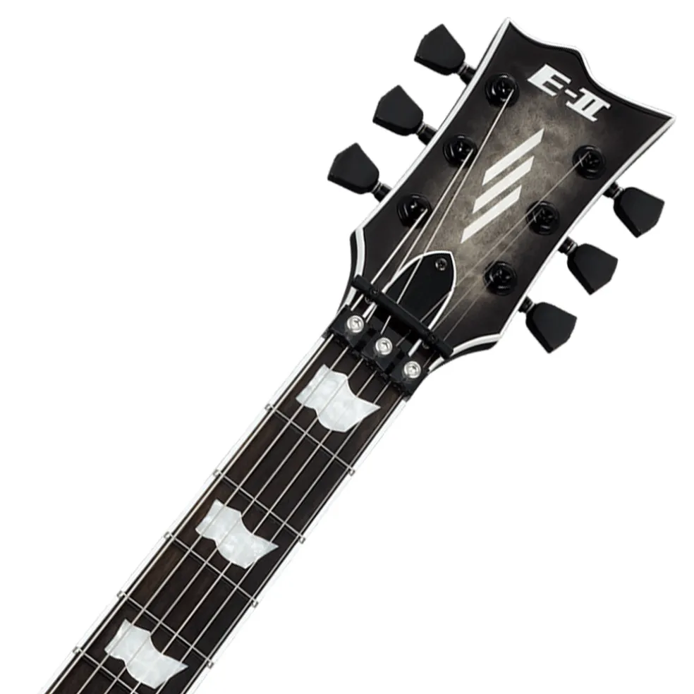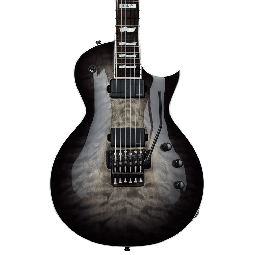 This E-II Eclipse FR features a Quilted Maple Top with Mahogany Back body, Mahogany neck with Thin U grip shape, Ebony fretboard with extra jumbo frets, locking nuts, Floyd Rose bridge, Gotoh tuners, Elixir Nanoweb strings, and equipped with Fishman Fluence Modern Alnico/Ceramic pickups in a Charcoal Burst finish.