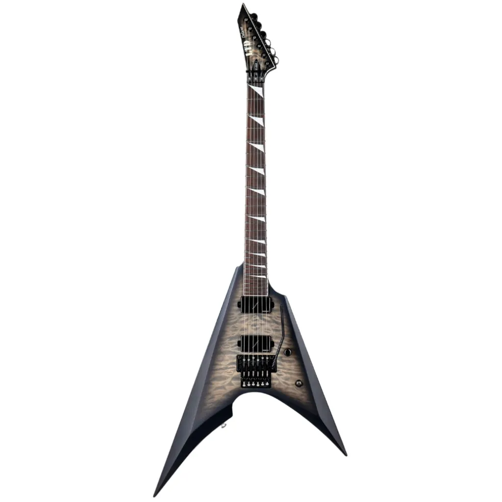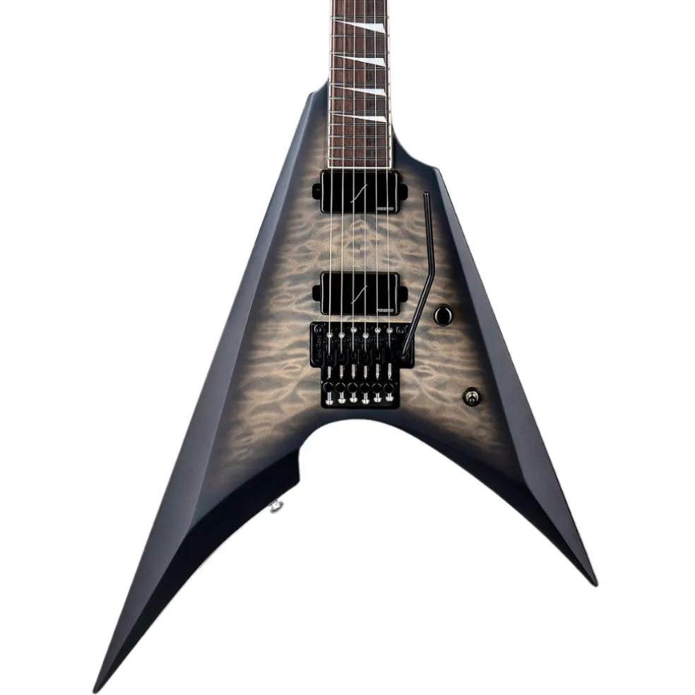 Guitars in the LTD 1000 Series are designed to offer the tone, feel, looks, and quality that working professional musicians need in an instrument. The Arrow-1000FR is a special member of the Arrow family, with its quilted maple top in Charcoal Sunburst Satin finish. It features neck-thru-body construction with mahogany body, 3-piece maple neck, reverse headstock with matching flamed maple finish, and Macassar ebony fingerboard with triangular white pearloid inlays and stainless steel frets. The sound of the Arrow-1000FR comes from its set of direct-mount Fishman Fluence Modern Humbucker active pickups (alnico in the neck and ceramic in the bridge), with push-pull control to select voicings and black nickel covers to match this guitar’s outstanding aesthetics. These pickups offer an outstanding variety of huge tones that range from aggressive and punchy to smooth and articulate. Components include a Floyd Rose 1000SE bridge with stainless steel screws and precise Grover tuners.