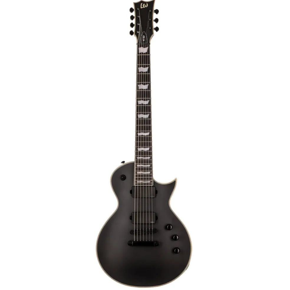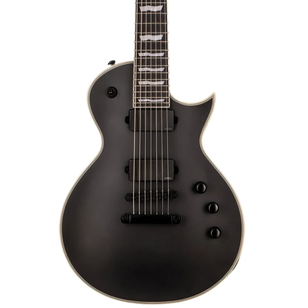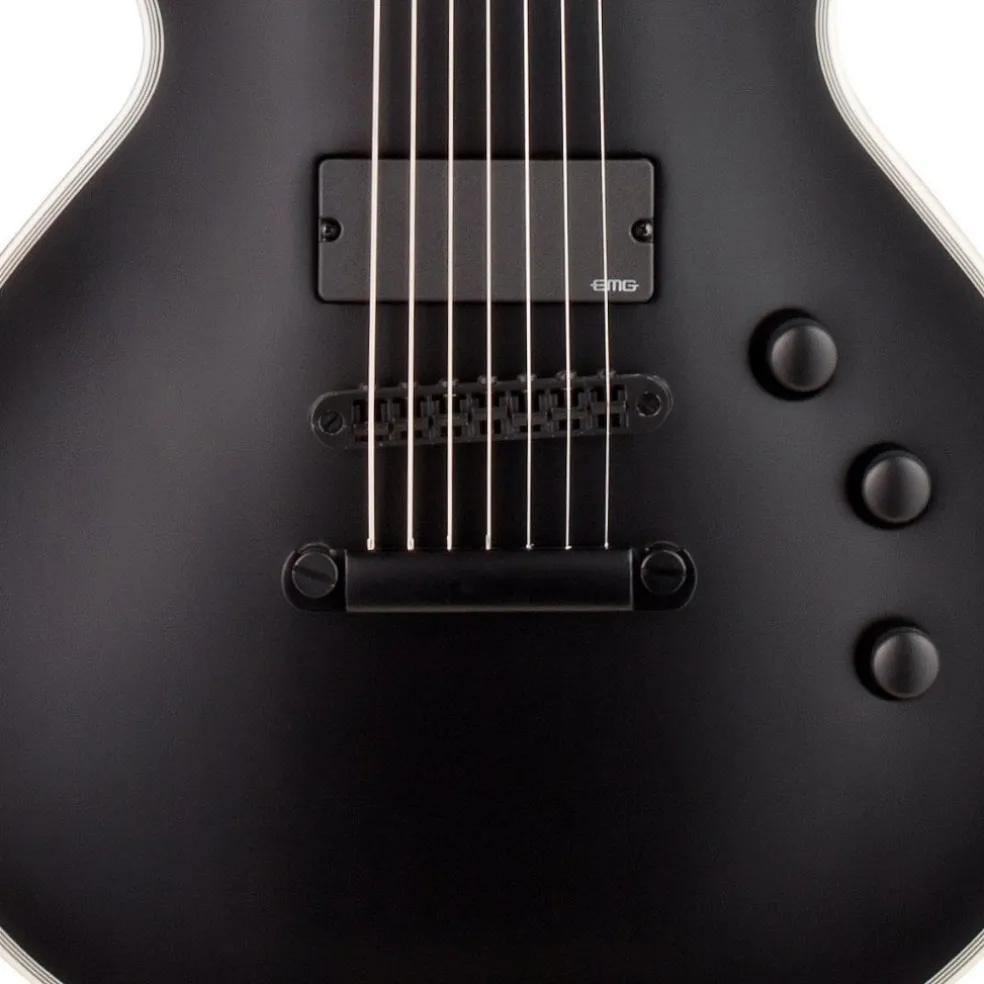 The world of 7-string guitars has exploded in recent years, with many players in the hard rock and metal community enjoying the extended low range that the extra string provides. The LTD EC-407 was designed for performance with exactly these things in mind. The 3 pc. maple neck and mahogany body with maple cap ensure that even your lowest notes will stand out to the crowd. In addition, you get an attainable way to get into professional 7-string playing, with premier construction and active electronics (EMG 81-7H / 60-7H). Available with matching black satin hardware, and 24 XJ fret macassar ebony fingerboard.