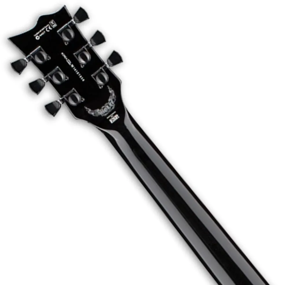 Gary Holt of Slayer and Exodus is a legend in the world of thrash metal. His LTD Signature Series GH-600 is based on the Eclipse body style, and was designed by Gary himself to handle the most aggressive, fast, and powerful playing you can muster. Its tone is driven by a pair of red-covered EMG active pickups: the EMG 89R in the neck, with a coil splitter controlled by a volume knob pull switch, and the in-your-face EMG 81 in the bridge. The GH-600NT offers a set-thru neck design, with its three-piece mahogany neck going deep into the guitar’s mahogany body cavity for terrific stability and smooth, unhampered access to the highest frets on its ebony fingerboard. This guitar’s vibe is accentuated by red binding on the body, neck, and headstock contrasting its glossy Black finish. The GH-600NT includes a Floyd Rose tremolo and Grover tuners. Also available in a non-tremolo version with the GH-600NT.