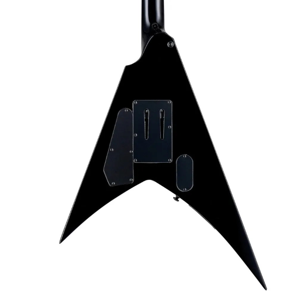 An influential legend in the world of thrash metal, Gary Holt joined his friend Kirk Hammett in Bay Area band Exodus in 1981, and proceeded to write music and perform on every Exodus album since then. Gary’s unmistakable playing style all made him the ideal choice as the second guitarist in Slayer for their final albums and tours. His LTD Signature Series GH-SV offers all of the aggression and power for which Gary is known and loved. This guitar makes use of the coveted ESP SV shape, with one side of the V-shape more elongated than the other. The body’s top and back are flat, with nothing to get in the way of pure shredding. Built at 24.75” scale, the GH-SV offers neck-thru-body construction, featuring a three-piece thin U-shaped mahogany neck and a mahogany body with maple cap. The Black finish of this guitar is accentuated by multi-ply red binding on the body, red binding on the neck and headstock, red pickup covers, and a special red scripted LTD logo. Its Macassar ebony neck is highlighted by pearloid split block inlays and 22 extra-jumbo stainless steel frets. Components on the GH-SV include a double-locking Floyd Rose 1000 tremolo system, Grover tuners, and a set of direct-mount active pickups including the EMG 89R (neck), with reversed coils to keep the single coil side closer to the neck to capture the sweet spot and a push-pull control to split the pickup, and an aggressive EMG 81 in the bridge position. Includes ESP deluxe hardshell case.