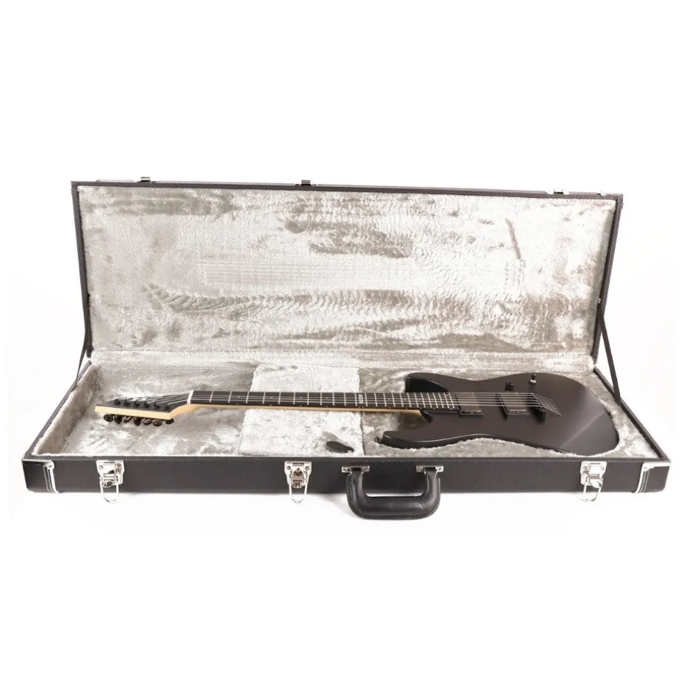 Jeff Ling handles the lead guitar duties for Australian metalcore kings Parkway Drive, and his Signature Series JL-600 takes the speed demon vibe of the ESP M Series to a whole new level. It offers neck-thru-body construction at 25.5” scale for excellent sustain and smooth, fast access to the higher frets, made even speedier with a satin-finished, unpainted, extra thin U-shaped three-piece maple neck. The JL-600 has a comfortable and resonant alder body and a Macassar ebony fingerboard with glow-in-the-dark side markers, a special “PWD” inlay at the 12th fret, and 24 extra-jumbo frets for two full octaves of rock. Jeff had us include a set of EMG Metalworks 60 (neck) and 81 (bridge) pickups for all the tones you need from creamy rhythms to screaming leads, and the JL-600 also includes a TonePros locking TOM bridge with string-thru-body design and LTD locking tuners. Available in Satin Black finish with Black hardware.