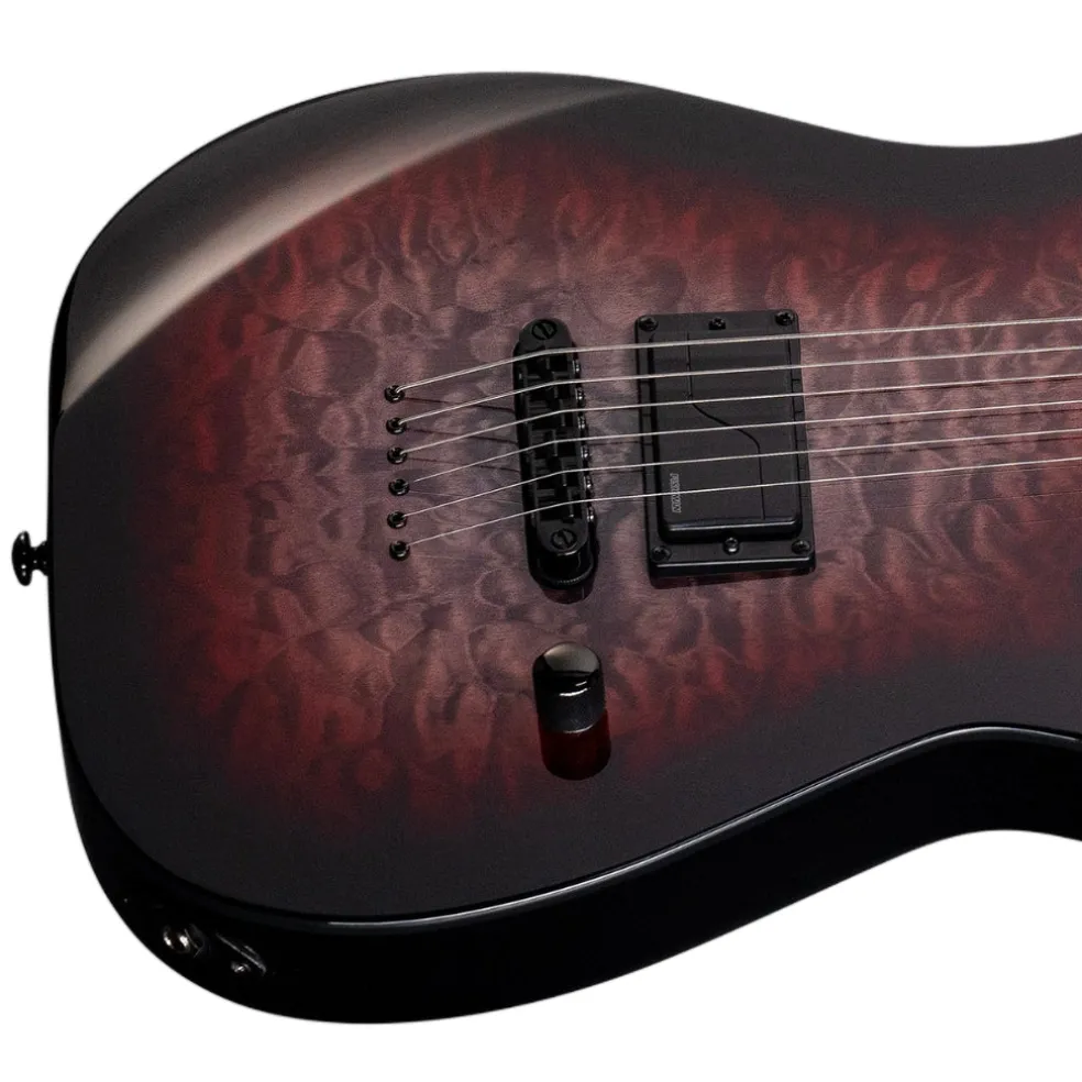 The JOSH MIDDLETON Signature Model LTD JM-I, in a striking Deep Blood Moon finish over a quilted maple top, combines aesthetics with top-tier performance. Built with an alder body and a three-piece roasted maple neck, it features bolt-on construction at a 25.5” scale, offering great resonance and playability.