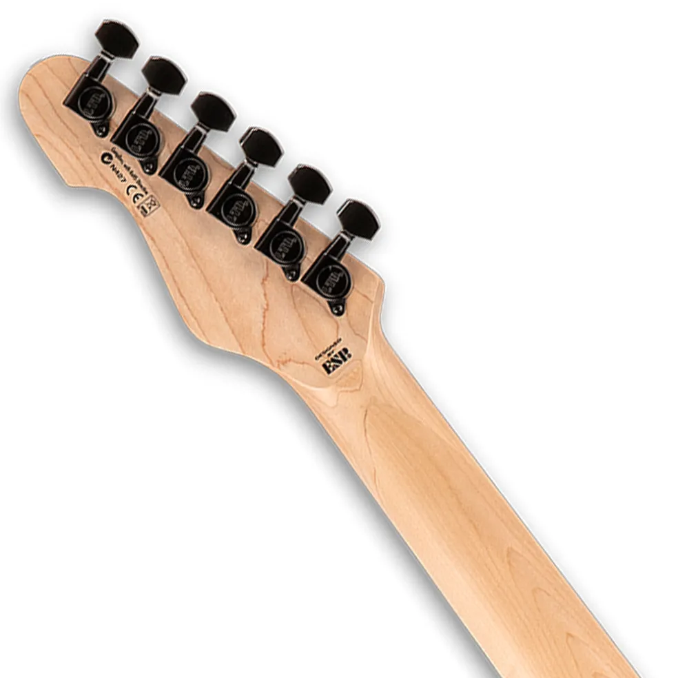The SN-200HT features a basswood body, maple neck, maple fingerboard with 24 extra-jumbo frets, an LTD fixed hardtail bridge with string-thru-body, and a set of high-output ESP Designed LH-150 pickups with coil-splitting on both pickups via push-pull control.