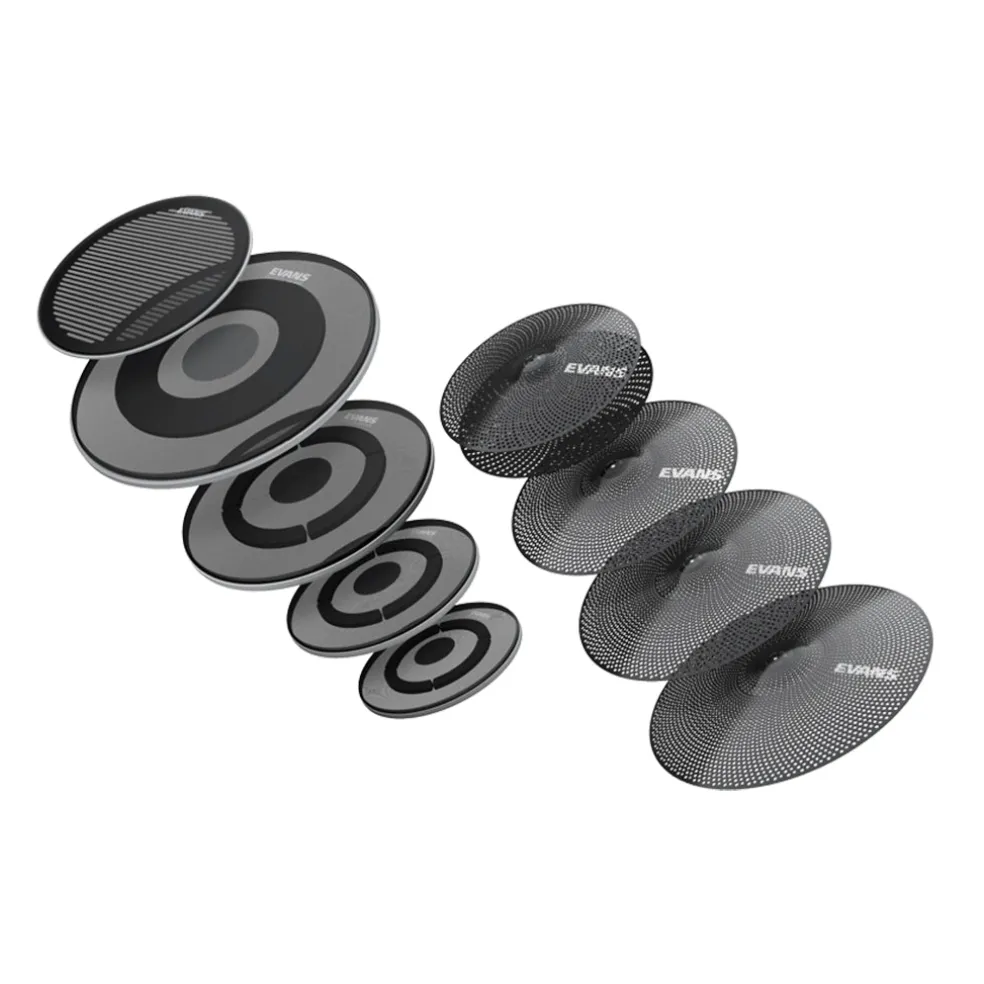 Evans dB One Rock System Pack + Cymbals offers you unprecedented freedom to play how you want, when you want. This pack features three dB One tom heads (10”, 12”, and 16”) and a 22” bass drumhead which, utilizing several Evans breakthroughs, remain faithful to your kit’s tone while generating 80% less volume. The included 14” dB One snare head combines our ShockWeave Mesh with new Snare Sim technology to keep the noise low, while replicating the buzz, crack, and excitement of an acoustic snare. Additionally, this pack comes with the full array of dB One Cymbals, which achieve authentic chime and resonance, at a fraction of the volume.