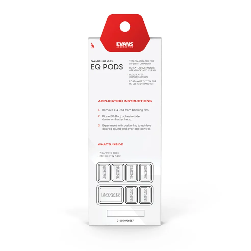 Sculpt your sound with EVANS EQ Pods, the ultimate solution to overtone, tuning, and resonance control. These polymer gels feature a Teflon-coated top side, helping them to remain stain-free and hold their shape. Designed for experimentation, you can apply and remove without surrendering grip, shape, or effectiveness.